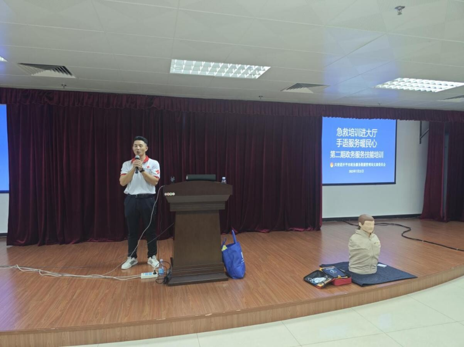 為深入推進平安開平建設,提升政務服務大廳無障礙服務能力,打造“好政務·暖服務”服務品牌,用“初心”“愛心”“真心”架起政務大廳和辦事群眾之間的溫馨橋梁,7月21日下午,市行政服務中心開展急救知識實操培訓以及政務服務手語技能培訓。 首先,由開平市紅十字會蔣立軍講師開展了以“應急始于心