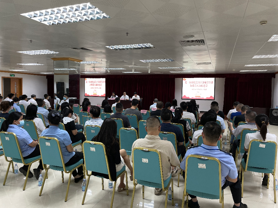 為深入學(xué)習(xí)貫徹習(xí)近平新時(shí)代中國特色社會(huì)主義思想和習(xí)近平總書記視察廣東重要講話、重要指示精神,深化自我革命、全面從嚴(yán)治黨,不斷推進(jìn)黨風(fēng)廉政建設(shè),9月1日,市政數(shù)局召開紀(jì)律教育學(xué)習(xí)月活動(dòng)動(dòng)員會(huì),對全局開展紀(jì)律教育學(xué)習(xí)進(jìn)行動(dòng)員部署。局機(jī)關(guān)、下屬單位全體干部職工,進(jìn)駐服務(wù)窗口和審辦后臺(tái)負(fù)責(zé)人、審辦后臺(tái)全體黨員參加會(huì)議。 局黨組書記、局長龔偉強(qiáng)作動(dòng)員講話,強(qiáng)調(diào)開展紀(jì)律教育學(xué)習(xí)月活動(dòng)是推進(jìn)黨風(fēng)廉政建設(shè)和反腐敗斗爭的一項(xiàng)重要舉措,要求政數(shù)系統(tǒng)全體黨員干部要統(tǒng)一思想,提高認(rèn)識(shí),深刻領(lǐng)會(huì)開展紀(jì)律教育學(xué)習(xí)月活動(dòng)的重要意義;要緊扣主題,突出重點(diǎn),扎實(shí)推進(jìn)紀(jì)律教育學(xué)習(xí)月活動(dòng)有序開展;要加強(qiáng)領(lǐng)導(dǎo),抓好落實(shí),確保紀(jì)律教育學(xué)習(xí)月活動(dòng)取得實(shí)效。隨后,龔偉強(qiáng)同志以“進(jìn)一步強(qiáng)化黨員干部廉潔自律,加強(qiáng)黨風(fēng)廉政建設(shè)”為主題,從“進(jìn)一步提高政治自覺、進(jìn)一步提高反腐意識(shí)、進(jìn)一步做到廉潔從政”三個(gè)方面,給全體人員上了一堂紀(jì)律教育警示專題課。 派駐紀(jì)檢組組長張立慶到會(huì)指導(dǎo)并講話,通過結(jié)合日常身邊的例子釋紀(jì)明規(guī),進(jìn)一步引導(dǎo)黨員干部自覺從思想上固本培元,提高黨性覺悟,筑牢思想道德防線。 全體與會(huì)人員還集中學(xué)習(xí)黨規(guī)黨紀(jì)微課之《中國共產(chǎn)黨紀(jì)律處分條例》,觀看了廉政教育警示片《破防》,以案為鑒,筑牢拒腐防變思想防線,切實(shí)增強(qiáng)自身拒腐防變和抵御風(fēng)險(xiǎn)的能力。