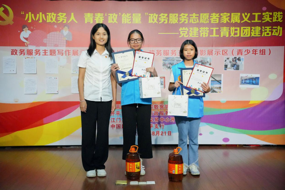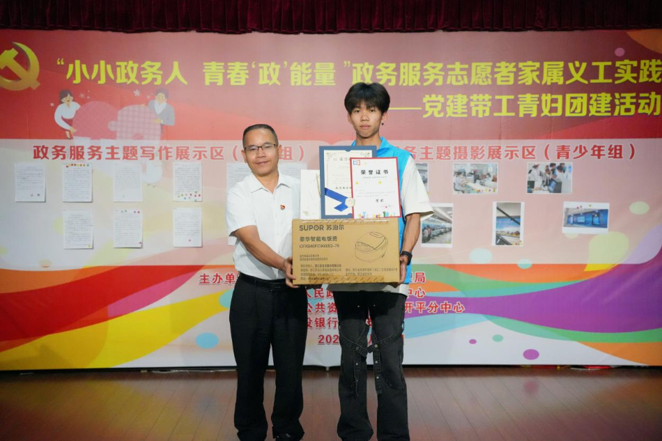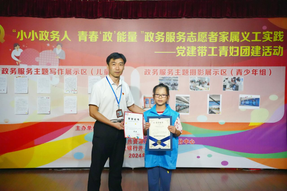 為深入學習貫徹黨的二十大和二十屆三中全會精神,培育和踐行社會主義核心價值觀,弘揚奉獻、有愛、互助、進步的志愿精神,培養(yǎng)廣大少年兒童的服務精神和社會參與能力,助力我市兒童友好城市建設,為全面深化政務服務改革貢獻志愿力量,打造優(yōu)質、溫情的營商環(huán)境,8月21日,市政數(shù)局、市行政服務中心、公共資源交易中心開平分中心和中國建設銀行開平支行以黨建共建為載體,聯(lián)合舉辦“小小政務人 青春‘政’能量”政務服務志愿者家屬義工實踐——黨建帶工青婦團建活動。 活動中,19名職工家屬化身小志愿者,在中國建設銀行開平支行代表帶領下參觀了企業(yè)黨建墻、志愿者服務站,深入了解企業(yè)黨建工作及志愿服務工作性質和重要意義,為實踐活動開展打下了良好基礎。 隨后,市行政服務中心代表為小志愿者介紹了中心志愿者服務站的急救服務,詳細講解了自動體外除顫器的使用方法,小志愿者快速掌握了急救技能,提高了生命安全意識。 緊接著,小志愿者投身政務服務大廳開展志愿服務實踐,主動幫助群眾取號預約、指引群眾使用自助設備,解答群眾咨詢。在服務大廳中,隨處可見小小的“政務藍”身影,忙碌在自己的志愿服務崗位上,其熱情青春的服務也贏得了群眾的贊揚。 志愿服務實踐結束后,兒童志愿者們用稚嫩真誠的文字記錄自己的志愿服務經(jīng)歷,寫下了本次志愿服務實踐活動的感想感悟,并對政務服務建言獻策。其中一位小志愿者寫道:“長大后要像媽媽一樣,把服務好每一位人民群眾作為心中最偉大的理想”,政務服務種子正撒播在每一位參與活動的小志愿者心中。少年志愿者們則在大廳現(xiàn)場對政務服務亮點進行取景拍攝,記錄下一幀幀生動、真實的社會畫面。最后,小志愿者們亮出作品,通過評委評分和志愿者們互評,最終得出獎項結果并頒發(fā)獲獎證書和獎品。 市政數(shù)局黨組成員、行政服務中心主任顏劍超為獲得政務服務主題寫作一等獎志愿者頒獎 中國建設銀行開平支行副行長勞嘉榮為獲得政務服務主題寫作二等獎志愿者頒獎 市行政服務中心副主任周建寧為獲得政務服務主題寫作三等獎志愿者頒獎 市政數(shù)局黨組成員葉朝銳為獲得政務服務主題攝影一等獎志愿者頒獎 公共資源交易中心開平分中心副主任勞麗芬為獲得政務服務主題攝影二等獎志愿者頒獎 市行政服務中心副主任張玉立為獲得政務服務主題攝影三等獎志愿者頒獎 此次活動通過政銀共建交流,進一步強化了黨建引領,有效加強了政與銀、社會和個體、職工和家屬之間的緊密聯(lián)系,是文明與愛心的傳播,具有良好實踐價值和社會意義。小志愿者們在志愿服務過程中直抒己見、擔當善為,大大培養(yǎng)了廣大少年兒童的服務精神和社會責任感,激勵少年兒童們有為奮發(fā),為我市政務服務質量的提升又添了一份青春力量。