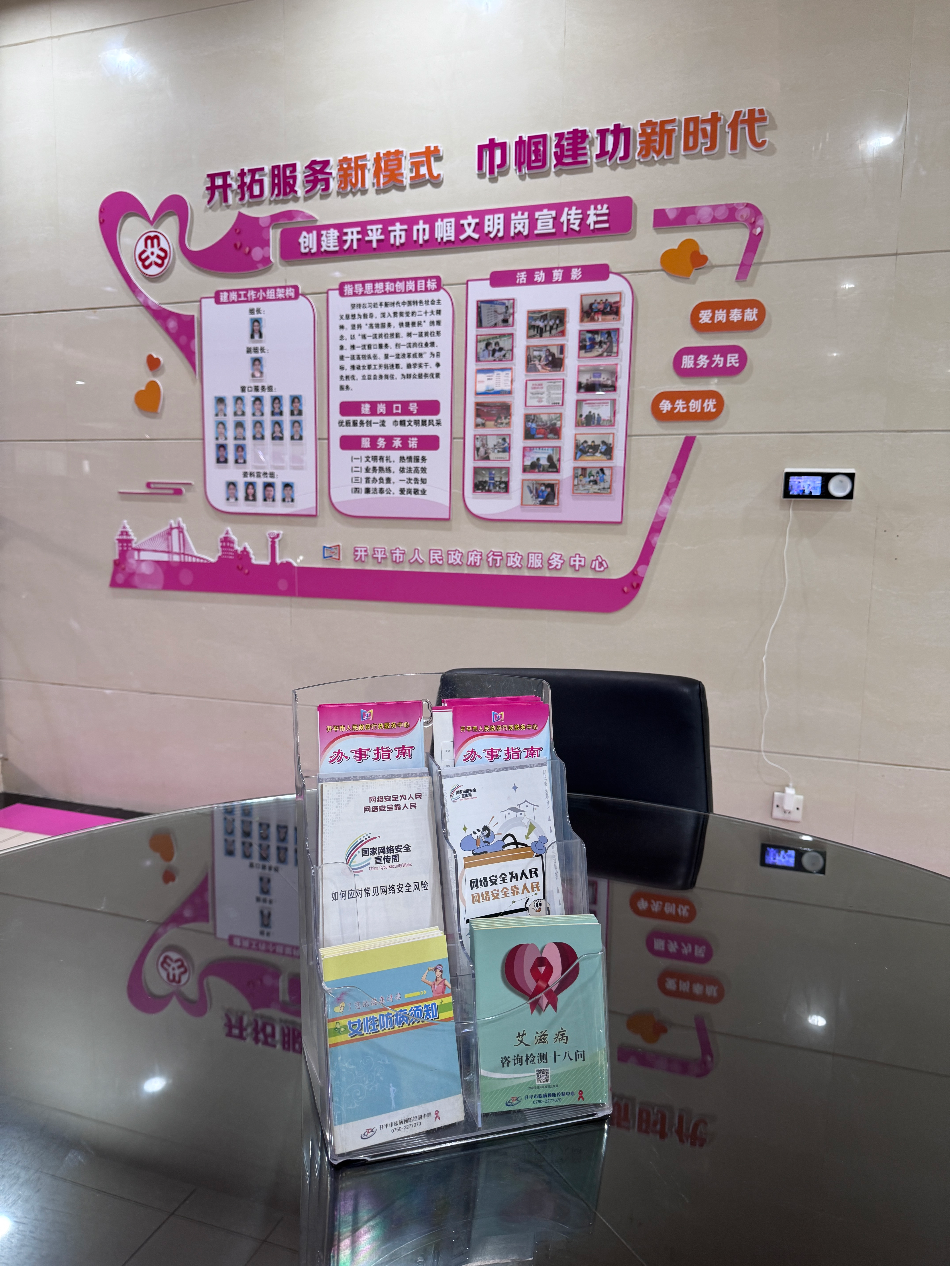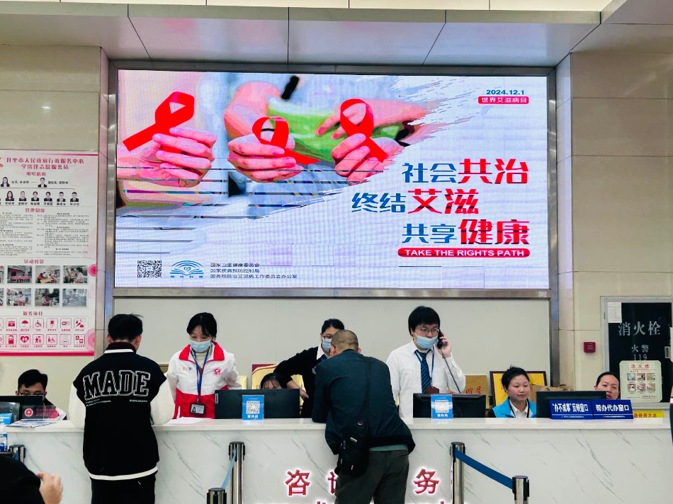 為進一步推動艾滋病防治工作,營造全社會參與艾滋病防治工作的良好氛圍,近日,開平市政數(shù)局開展艾滋病防治宣傳。在行政服務中心一樓大堂LED屏幕上循環(huán)播放世界艾滋病日公益海報,并在大堂無障礙低位服務臺、“政務服務”24小時自助服務區(qū)咨詢區(qū)、二樓自助取號機旁、三樓公共資源交易中心窗口和青年學習園地等地方放置《艾滋病咨詢檢測十八問》《男性保健手冊》《女性防病須知》手冊,志愿者也積極向群眾宣傳艾滋病防治知識。