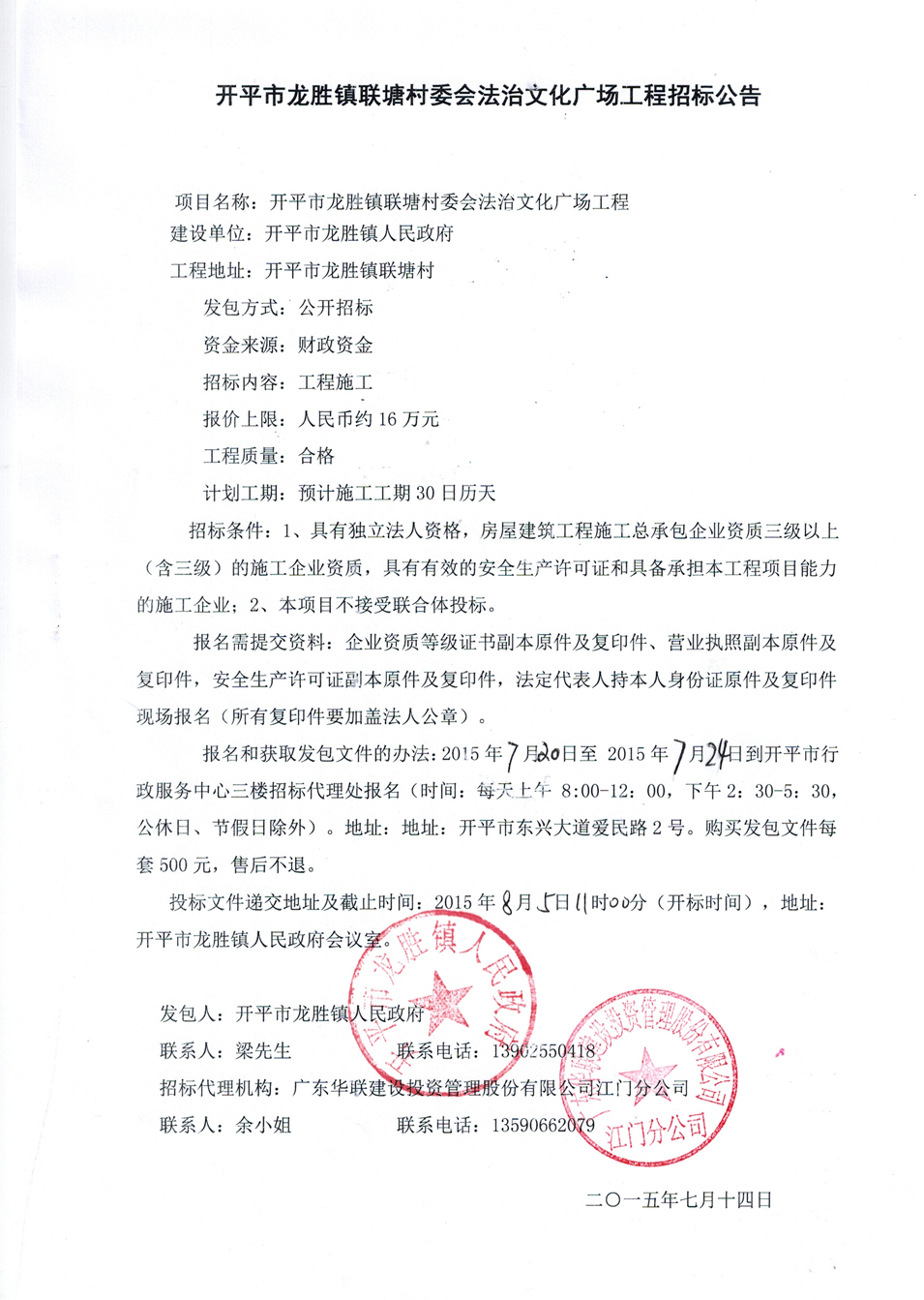 開平市龍勝鎮(zhèn)現(xiàn)龍村委會塘尾村村容村貌整治項(xiàng)目工程招標(biāo)公告