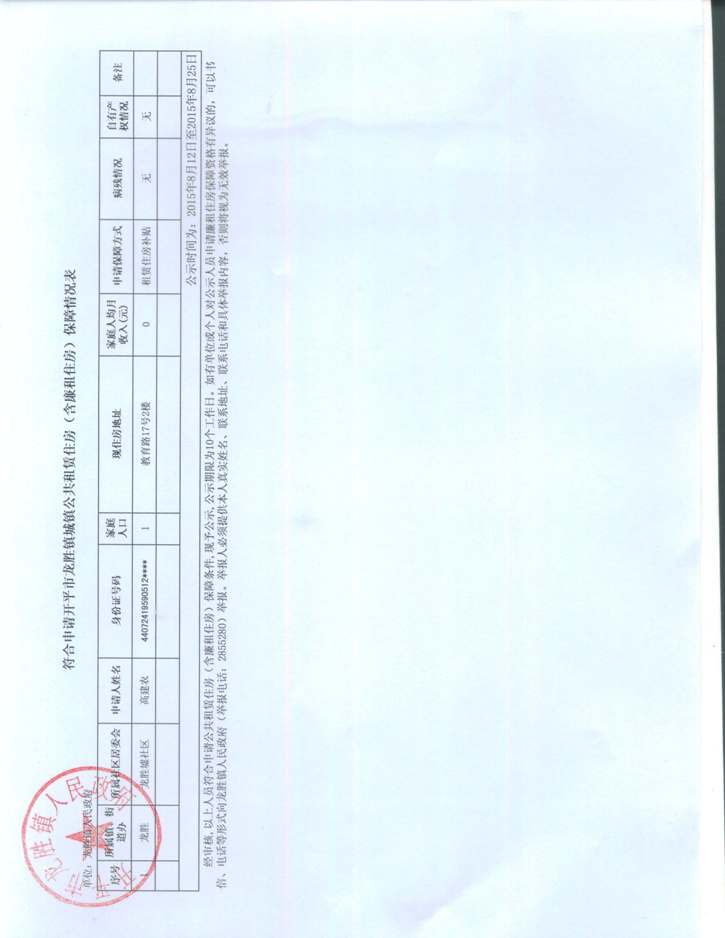 符合申請(qǐng)開平市龍勝鎮(zhèn)城鎮(zhèn)公共租賃住房(含廉租住房)保障情況公示