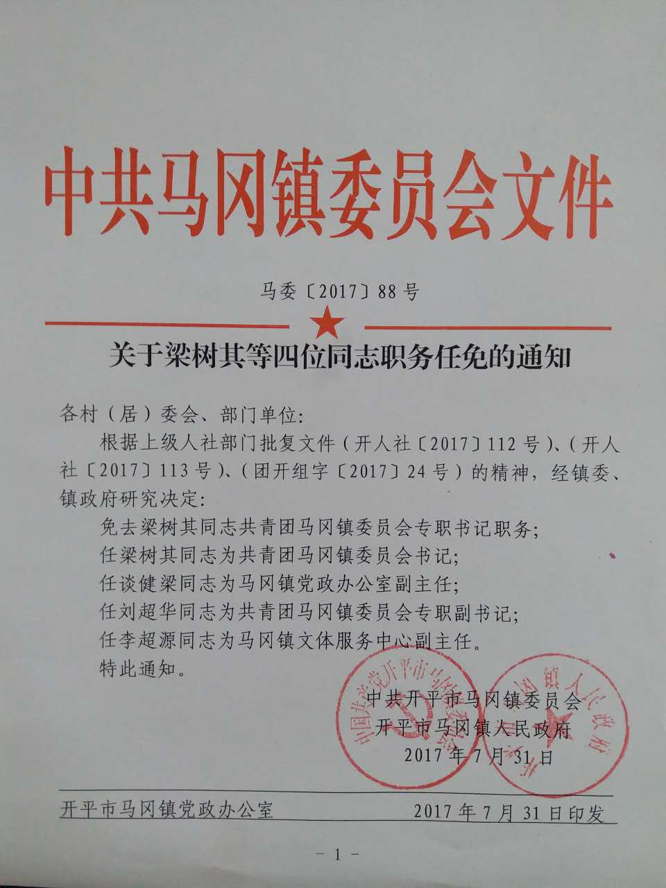 關(guān)于梁樹其等四位同志職務(wù)任免的通知