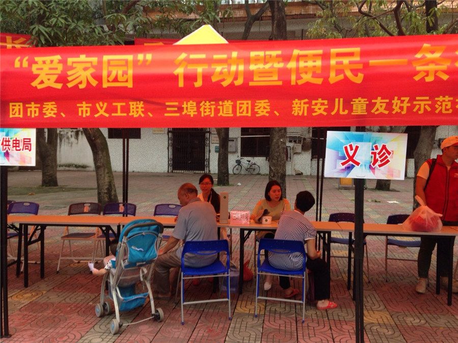 2016年4月16日上午,團(tuán)市委、市義工聯(lián)、三埠街道團(tuán)委及有關(guān)部門(mén)和新安社區(qū)義工服務(wù)站與流行密碼、三埠衛(wèi)生院義工服務(wù)隊(duì)聯(lián)合在三埠新昌公園開(kāi)展了義剪、義診及清潔衛(wèi)生環(huán)境建設(shè)美好家園義工活動(dòng),本次活動(dòng)吸引了附近許多群眾參與。