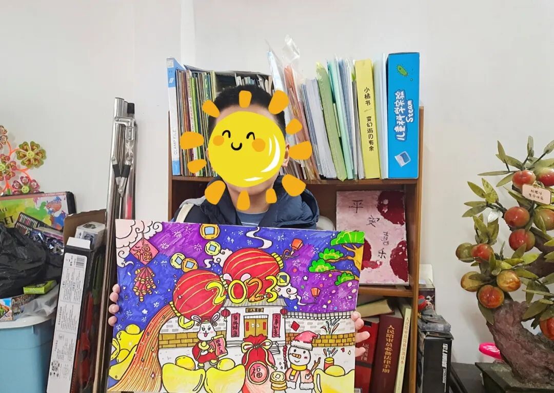 慰問對象向慰問團(tuán)展示自己關(guān)于新年的畫作