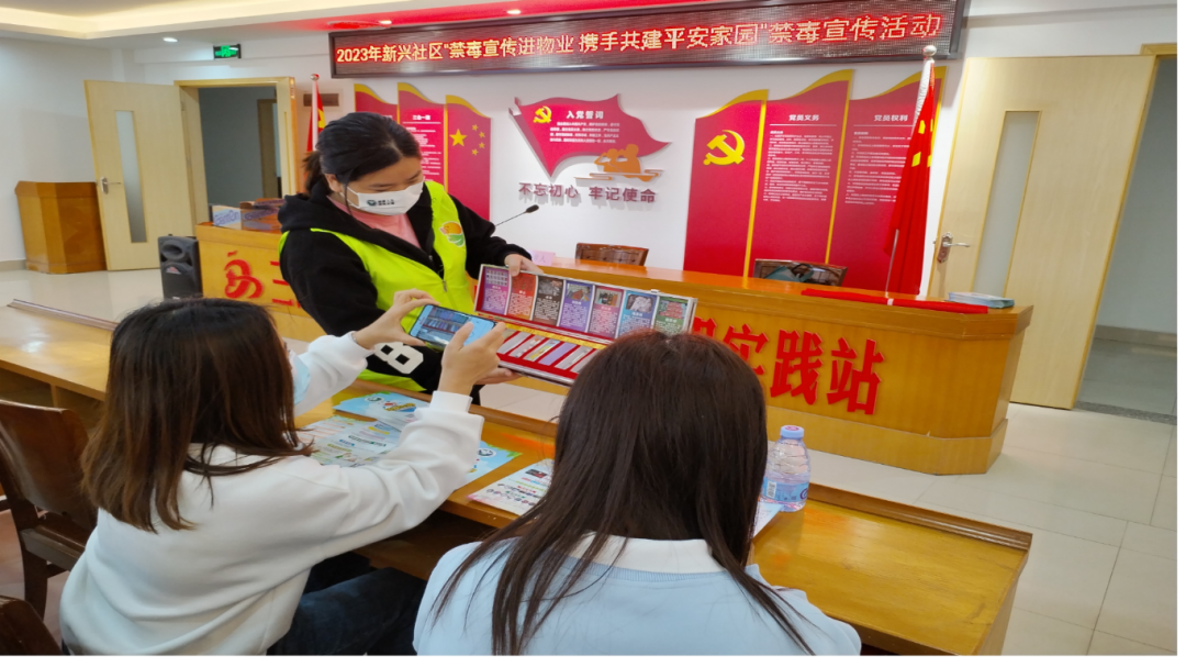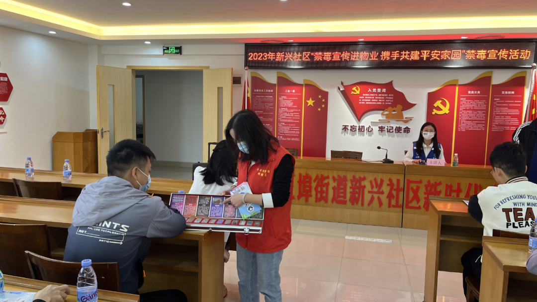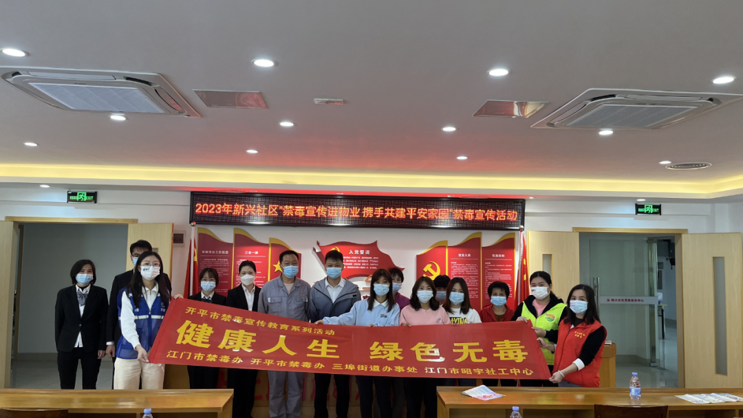近日,三埠街道禁毒工作領導小組辦公室聯(lián)合新興社區(qū)、昭宇社工中心開展“禁毒宣傳進物業(yè) 攜手共建平安家園”禁毒宣傳活動,進一步增強社區(qū)居民識毒、防毒、拒毒意識,使禁毒知識家喻戶曉、深入人心。