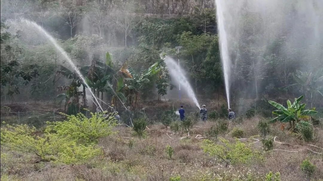 在模擬的仁親村委會象山公園“森林火災(zāi)”現(xiàn)場,應(yīng)急搶險隊員們分工合作、協(xié)同作戰(zhàn),快速鋪設(shè)好消防水管,啟動高壓水泵、風(fēng)力滅火器及使用打火棒等滅火工具進行撲滅,對火情迅速處理。同時做好人員安全撤離、余火清理、現(xiàn)場留守等后續(xù)工作,做到“打早、打小、打了”,應(yīng)急救援演練達到預(yù)期效果。