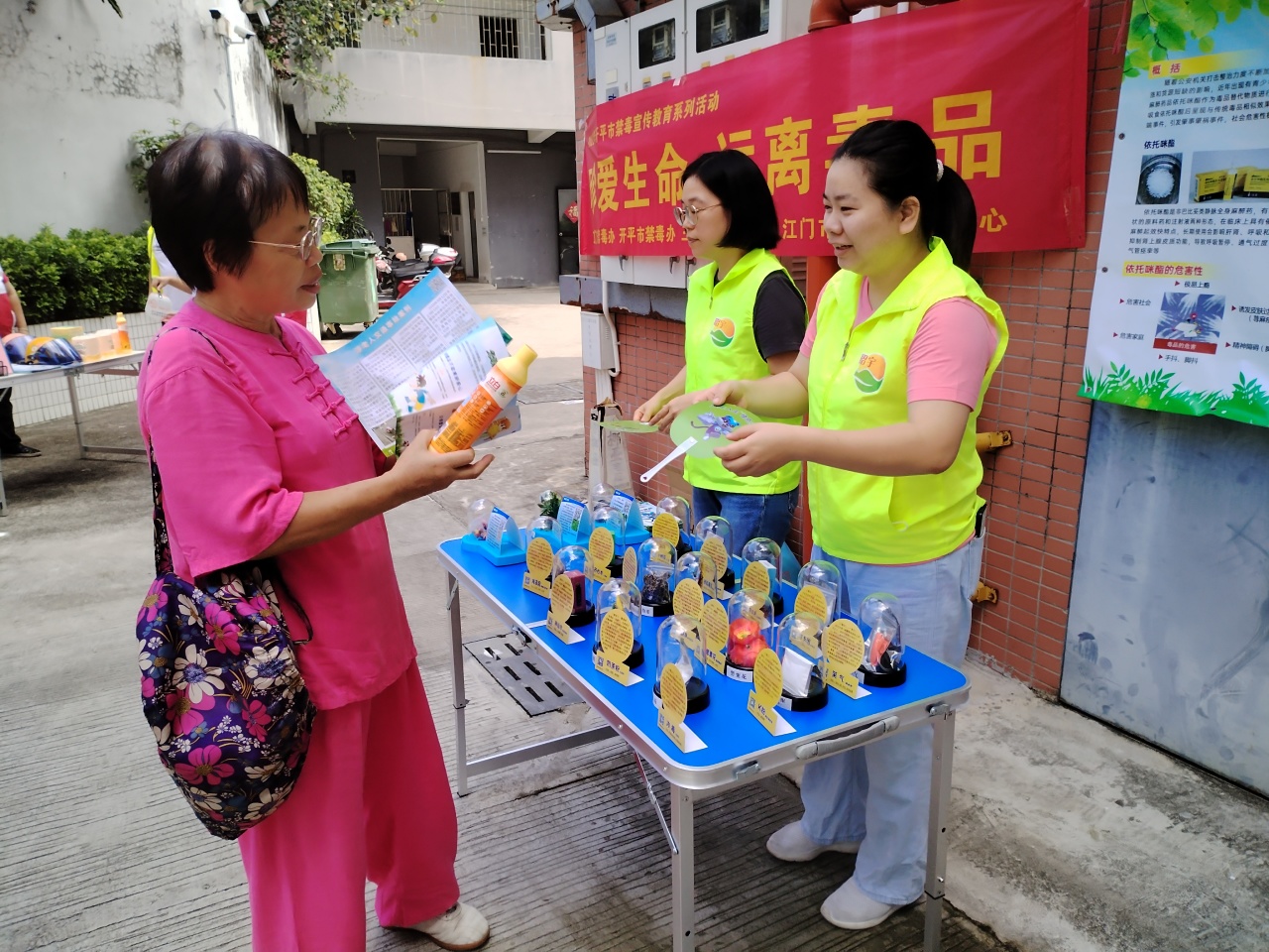 為進(jìn)一步宣傳新型毒品濫用危害,全面普及防范知識(shí),防止新精神活性物質(zhì)流入市場(chǎng),切實(shí)提高全民禁毒意識(shí)和防毒能力,8月3日上午,三埠街道禁毒工作領(lǐng)導(dǎo)小組辦公室聯(lián)合江門市昭宇社工中心在富麗花園開展新型毒品替代品“依托咪酯”禁毒宣傳活動(dòng)。 活動(dòng)現(xiàn)場(chǎng),禁毒社工宣講員通過展板和宣傳單張內(nèi)的圖文資料,詳細(xì)向群眾科普“依托咪酯”的外觀、濫用方式、吸食后的狀態(tài)以及危害等知識(shí);提醒群眾目前社會(huì)上出現(xiàn)一些不法分子利用“依托咪酯”的麻醉作用,將其用作毒品的替代品進(jìn)行銷售,嚴(yán)重?cái)_亂正常的藥品管理秩序;呼吁群眾要樹立珍愛生命、遠(yuǎn)離毒品的正確觀念,遠(yuǎn)離“依托咪酯”,拒絕不良誘惑,積極配合公安機(jī)關(guān)和市場(chǎng)監(jiān)管部門的積極檢舉濫用“依托咪酯”等行為。 此次防范毒品濫用宣傳教育活動(dòng),廣泛傳播了“健康人生、綠色無毒”理念,進(jìn)一步加強(qiáng)了他們對(duì)麻醉類藥品、精神類藥品的認(rèn)知,切實(shí)增強(qiáng)廣大群眾對(duì)新型毒品、軟性毒品的識(shí)別能力和防范能力,為構(gòu)建無毒三埠奠定堅(jiān)實(shí)的群眾基礎(chǔ)。