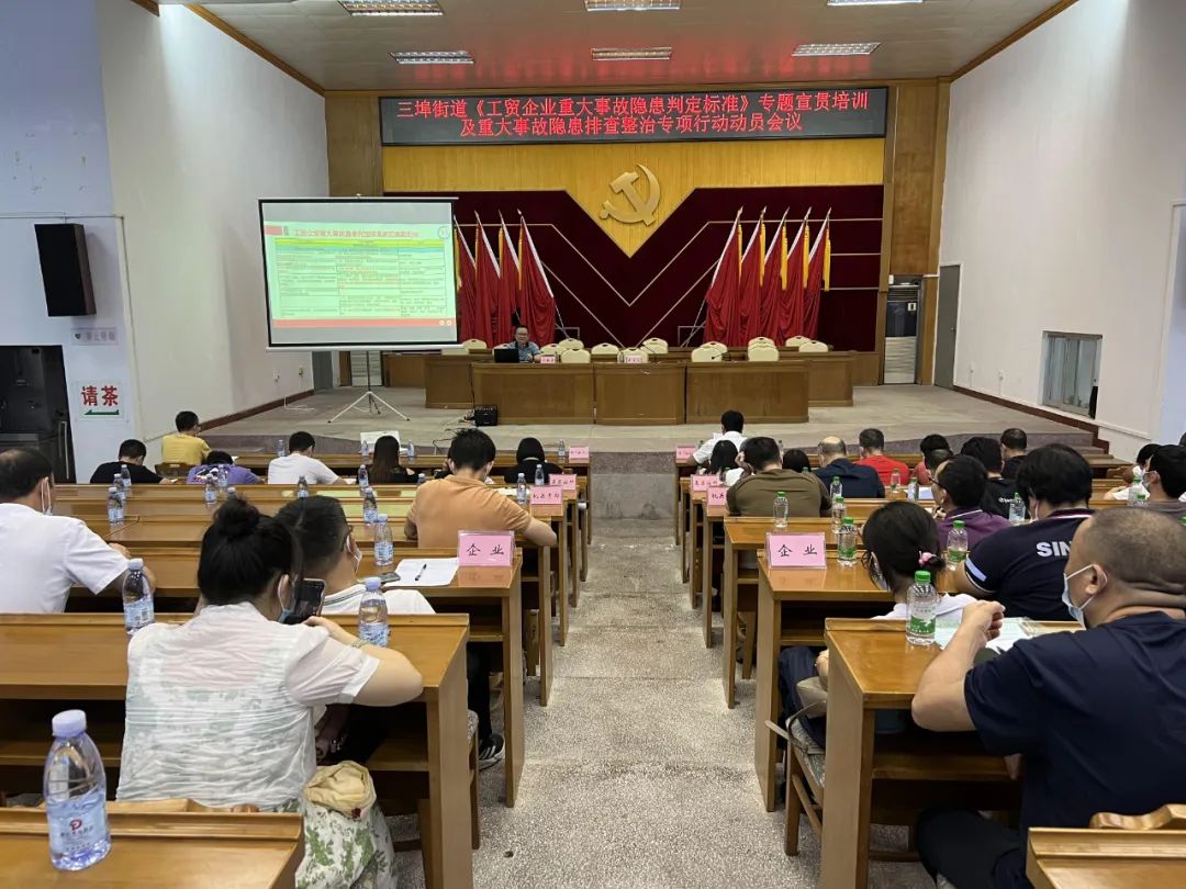 近日,應(yīng)急管理部印發(fā)了《工貿(mào)企業(yè)重大事故隱患判定標(biāo)準(zhǔn)》(中華人民共和國(guó)應(yīng)急管理部令第10號(hào)),自2023年5月15日起施行。 為進(jìn)一步提升應(yīng)急管理人員對(duì)重大風(fēng)險(xiǎn)辨識(shí)管控的能力,深化隱患排查治理實(shí)效,5月16日上午,三埠街道召開《工貿(mào)企業(yè)重大事故隱患判定標(biāo)準(zhǔn)》專題宣貫培訓(xùn)及重大事故隱患排查整治專項(xiàng)行動(dòng)動(dòng)員會(huì)議,推動(dòng)企業(yè)落實(shí)安全生產(chǎn)主體責(zé)任,及時(shí)消除各類安全隱患,助力企業(yè)高質(zhì)量發(fā)展。街道安委會(huì)成員部門、各村(社區(qū))、基層站所、企業(yè)等負(fù)責(zé)人共100多人參加了會(huì)議。 街道黨工委委員、辦事處副主任周覺能通報(bào)了近期國(guó)內(nèi)多起較大以上安全事故,總結(jié)了三埠街道4月以來的安全生產(chǎn)和消防安全工作情況,并部署了下一階段的安全生產(chǎn)和消防安全工作。會(huì)議以近期國(guó)內(nèi)安全事故為鑒,提出了七方面工作要求:一是整治工貿(mào)企業(yè)重大事故隱患。各工貿(mào)企業(yè)要落實(shí)安全生產(chǎn)主體責(zé)任,認(rèn)真學(xué)習(xí)《工貿(mào)企業(yè)重大事故隱患判定標(biāo)準(zhǔn)》,按照國(guó)務(wù)院安委會(huì)印發(fā)的《全國(guó)重大事故隱患專項(xiàng)排查整治2023行動(dòng)總體方案》,開展重大事故隱患排查整治工作。二是嚴(yán)防各類火災(zāi)事故。各企業(yè)和街道應(yīng)急、消防等相關(guān)部門要加強(qiáng)對(duì)工貿(mào)企業(yè)的檢查督導(dǎo),嚴(yán)查違規(guī)用火用電等消防安全問題。從嚴(yán)整治違規(guī)住人“三小”場(chǎng)所,采取安裝可聯(lián)網(wǎng)式無線煙感器、實(shí)體墻封堵、安裝防火門、開設(shè)逃生窗和配備滅火器材等技防措施,消除安全隱患。三是嚴(yán)防分租式廠房事故。各村委會(huì)(社區(qū))要組織人員,全面排查分租式廠房安全狀況,堅(jiān)決整治違規(guī)分租、違規(guī)電氣焊、違規(guī)儲(chǔ)存易燃易爆物品、違規(guī)占用堵塞逃生通道等“廠中廠”常見的安全亂象。四是嚴(yán)防交通安全事故。著力加強(qiáng)道路交通安全防范,同時(shí)要加強(qiáng)客船、漁船等重點(diǎn)船舶的安全監(jiān)管。五是嚴(yán)防建筑施工事故。緊抓建筑施工安全各項(xiàng)工作,嚴(yán)厲打擊各類違建行為。六是抓實(shí)抓細(xì)三防工作。各村委會(huì)(社區(qū))、各相關(guān)部門要扎實(shí)做好防風(fēng)防汛的應(yīng)急準(zhǔn)備,進(jìn)一步完善三防工作各項(xiàng)制度和相關(guān)設(shè)施設(shè)備,做好三防值班值守工作。七是廣泛開展安全宣傳。5月12日是我國(guó)第15個(gè)全國(guó)防災(zāi)減災(zāi)日,今年6月是第22個(gè)全國(guó)“安全生產(chǎn)月”。要以此為契機(jī),加強(qiáng)防災(zāi)減災(zāi)和安全生產(chǎn)宣傳,增強(qiáng)企業(yè)群眾關(guān)于防災(zāi)減災(zāi)和安全生產(chǎn)的意識(shí)。
