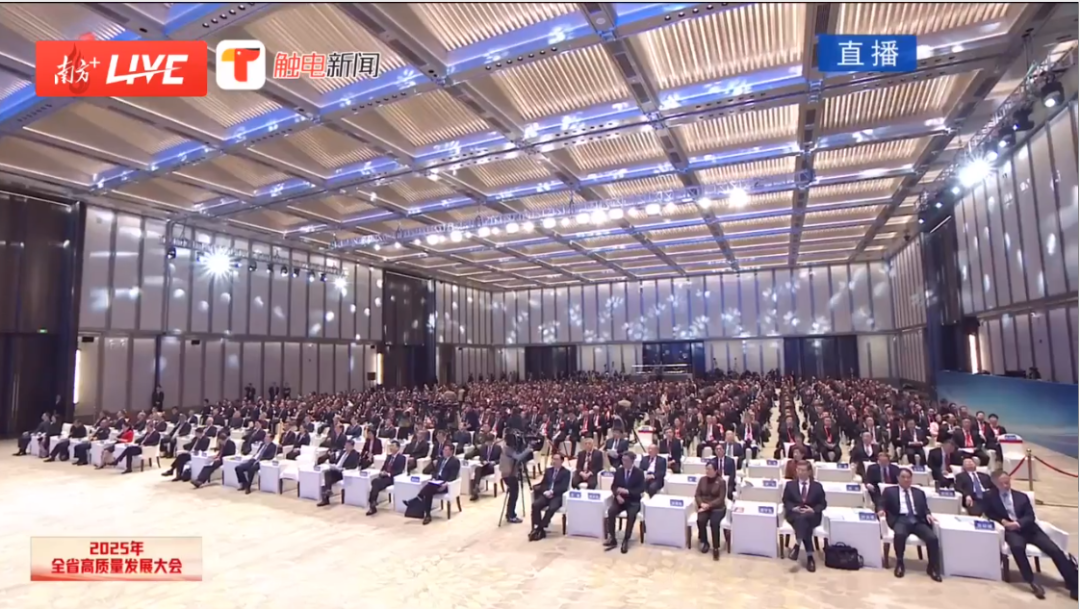 2025年全省高質(zhì)量發(fā)展大會(huì)現(xiàn)場(chǎng),此為直播截圖。來源:南方+客戶端