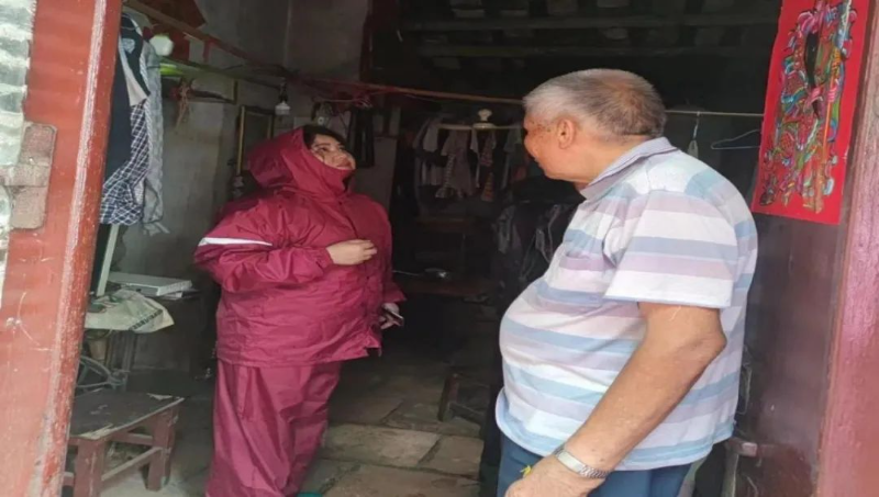 強降雨期間,海燕村網(wǎng)格員何慧龍和駐村干部化身“防汛先鋒”,無懼風雨,穿上雨靴、打著雨傘、走街串巷,全力保障群眾生命和財產(chǎn)安全。對網(wǎng)格內(nèi)危房、低洼易澇地帶、排水設施等重點領域、薄弱環(huán)節(jié)進行重點排查,在危房處張貼“危險勿近”告示牌,設置警戒標志。期間,共走訪困難孤寡老人3戶,巡查老舊房屋10間,低洼易澇點6處,及時有效地消除了安全隱患。