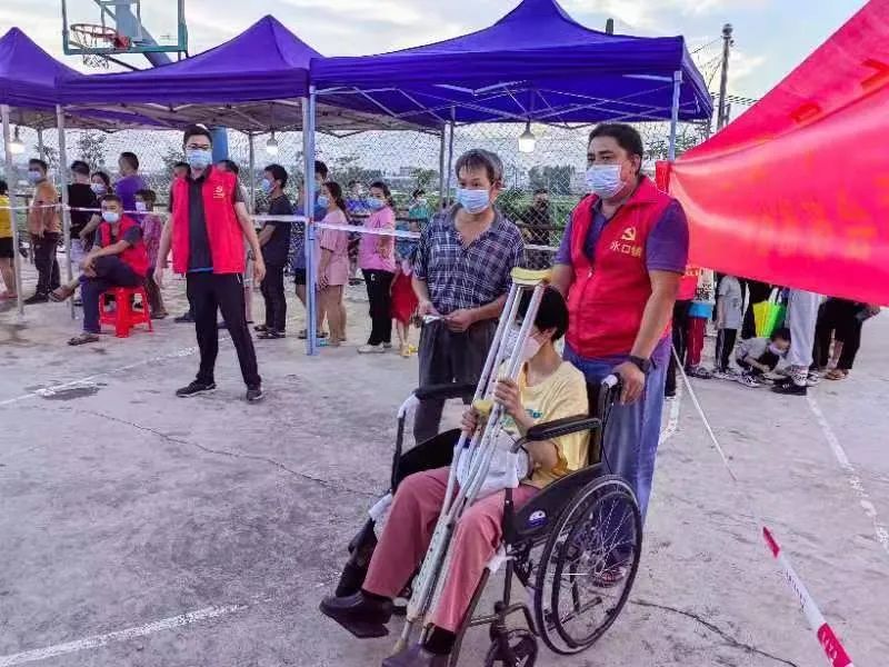 酷暑難耐,人潮涌動,核酸檢測對不少的長者和行動不便人員而言并非易事。各檢測點黨員和網(wǎng)格員相繼行動,成立見“急”行事小隊,為群眾解決急難問題,提供最貼心的服務。