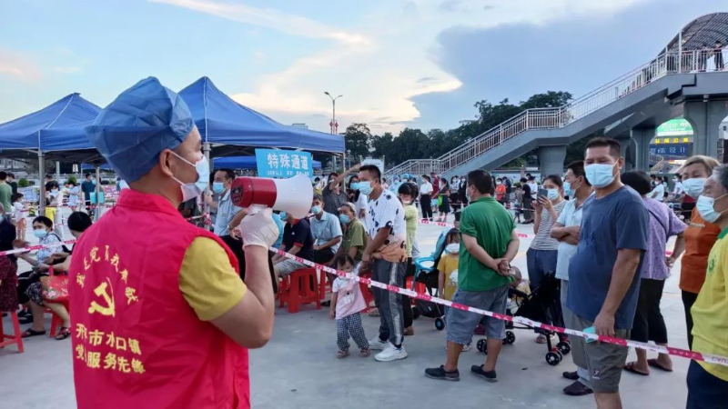 7月9日,開平市在中開高速赤坎服務區(qū)核酸篩查中發(fā)現(xiàn)2管結(jié)果異常,防疫“警報”驟然響起。當天下午3時,水口鎮(zhèn)236名鎮(zhèn)村黨員干部、66名專職網(wǎng)格員向“疫”而行,迅速開展檢測點場地布置和物資準備,全面開展疫情防控風險排查核酸檢測,全力以赴筑牢疫情防控銅墻鐵壁,讓紅色力量閃耀在水口防疫的最前線。
