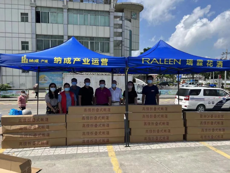 納成廣泰黨支部、瑞霖淋浴公司為升寶廣場檢測點送來20頂帳篷