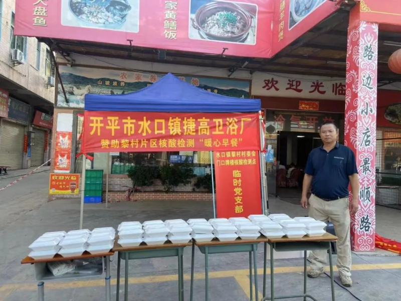 捷高衛(wèi)浴向黎村片區(qū)檢測點贈送暖心早餐