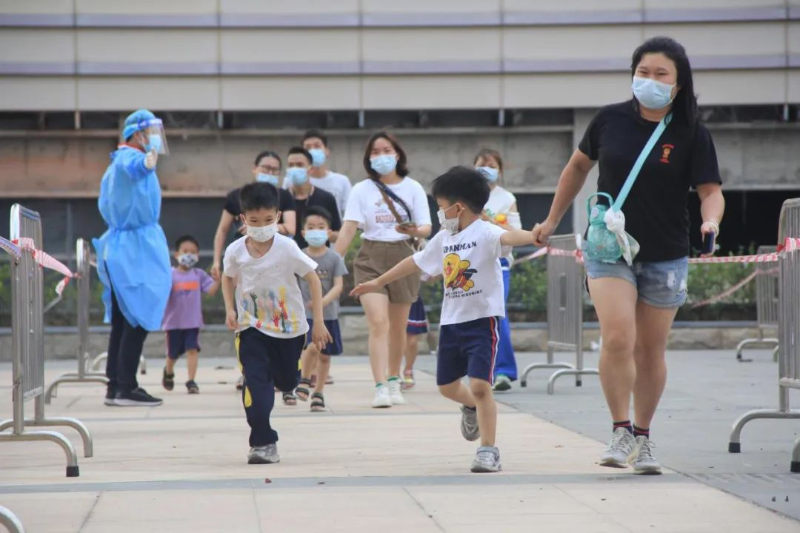 炎炎夏日,即便是精力最旺盛的小朋友們也耐不住烈日的炙烤,一做完核酸檢測,就迫不及待地拉著媽媽的手臂,歡快的朝著家的方向奔跑離去。