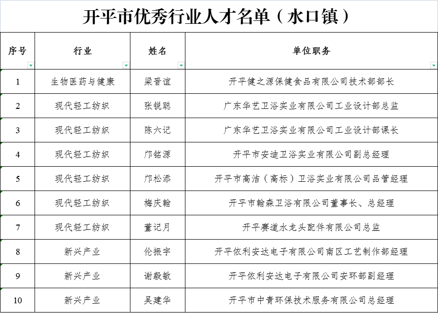目前,水口鎮(zhèn)成功申報開平市優(yōu)秀行業(yè)人才共10名,其中水暖衛(wèi)浴行業(yè)(現(xiàn)代輕工紡織)人才6名,是“水口衛(wèi)浴”人才隊伍的領(lǐng)軍代表,他們積極發(fā)揮自身專業(yè)優(yōu)勢,為衛(wèi)浴產(chǎn)業(yè)的發(fā)展貢獻了智慧和力量。