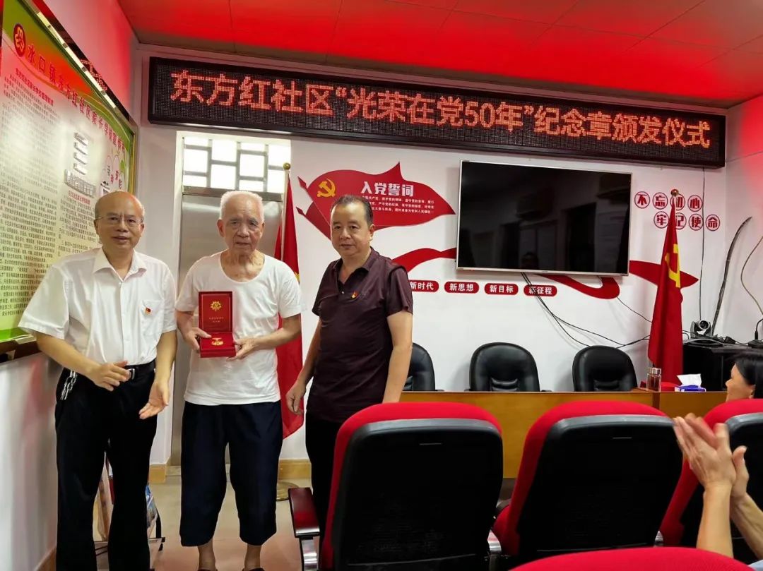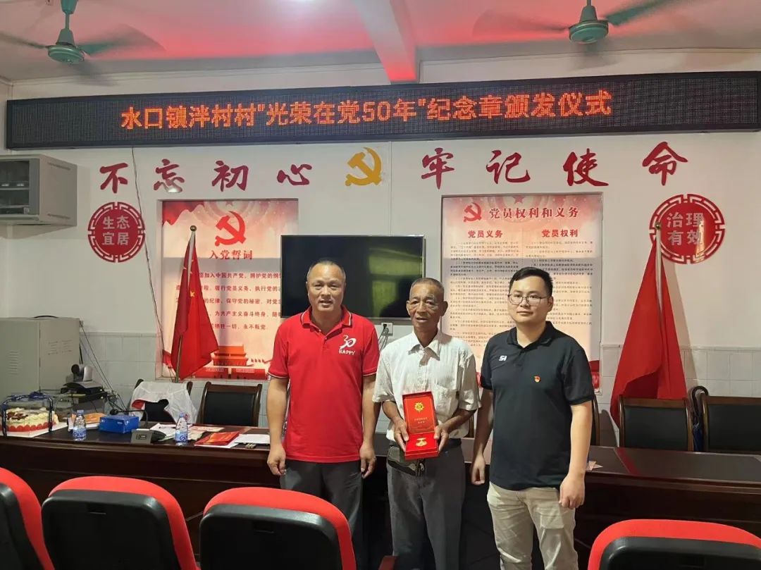 為進(jìn)一步增強(qiáng)老黨員們的榮譽(yù)感、歸屬感、使命感,激發(fā)全鎮(zhèn)黨員干部勇于擔(dān)當(dāng)、砥礪奮進(jìn),水口鎮(zhèn)黨委組織駐村領(lǐng)導(dǎo)、干部分別到各村(社區(qū))對(duì)31名黨齡達(dá)到50年、一貫表現(xiàn)良好的老黨員進(jìn)行走訪并頒發(fā)“光榮在黨50年”紀(jì)念章。