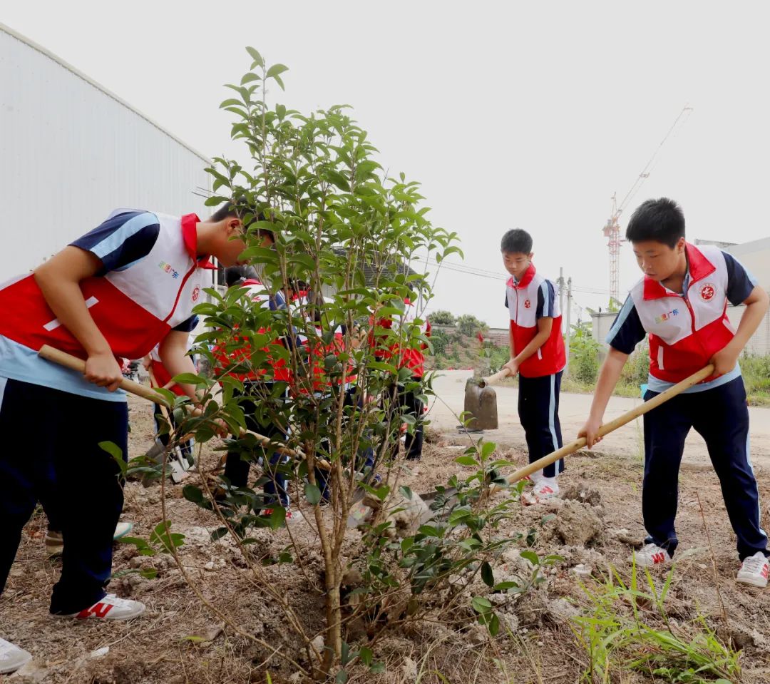 活動現(xiàn)場,青年志愿者和同學(xué)們干勁十足,有的揮鍬鏟土、扶苗填坑,有的踏土固根、提水澆灌,種下樹苗100棵,為初春的大地增添一抹新綠,讓村道兩旁綻放生機。