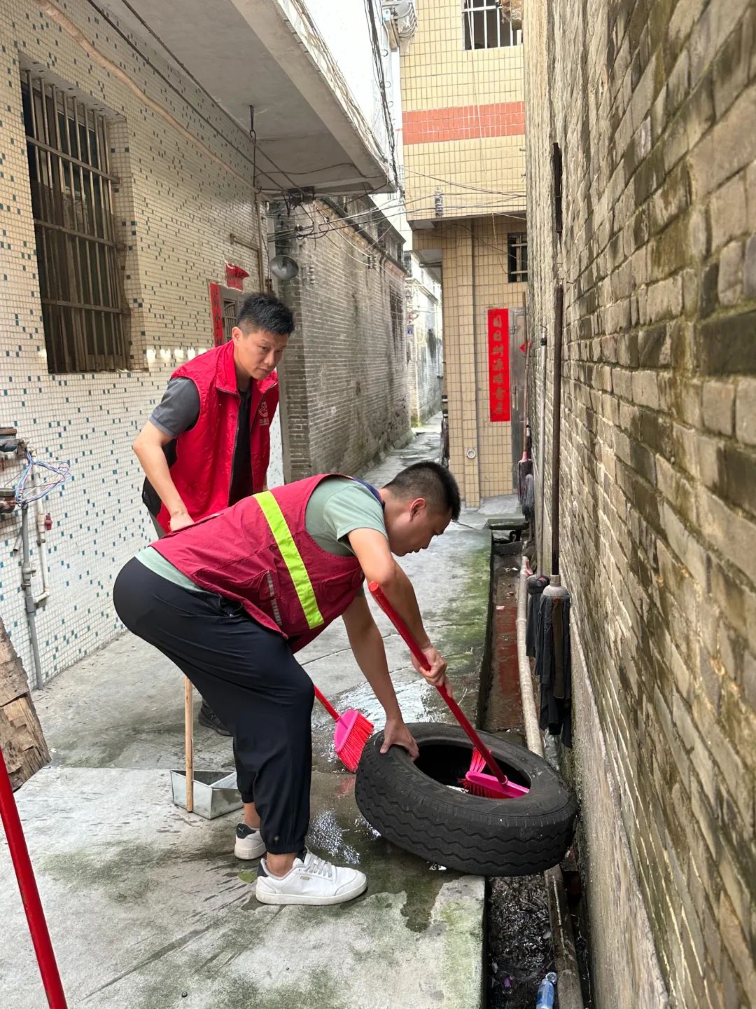 鎮(zhèn)領(lǐng)導(dǎo)班子成員下沉村(社區(qū))防控一線,帶領(lǐng)市直部門支援同志、駐村組、“兩委”干部、“雙報(bào)到”黨員、網(wǎng)格員、社工志愿者、熱心群眾等,深入巷道村道、池塘水體、綠化帶、閑置地塊及易孳生蚊蟲的地方,按照“五清五倒”要求,針對各類花盆托盤、閑置器皿、廢棄輪胎、泡沫箱等蚊蟲孳生高風(fēng)險(xiǎn)點(diǎn)進(jìn)行重點(diǎn)清理,做到“發(fā)現(xiàn)一處、清理一處”,力求不留死角、不留盲區(qū),從源頭清除蚊蟲孳生溫床。