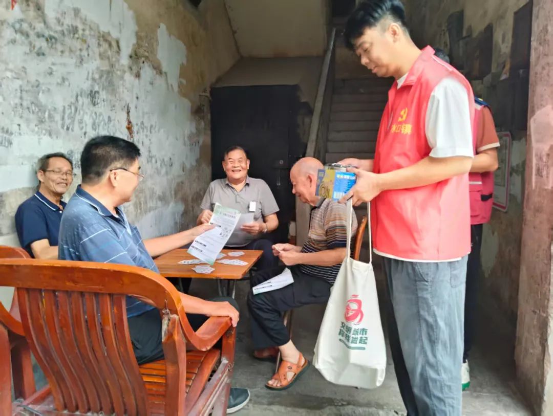新市社區(qū)作為水口外來人口最多的社區(qū),水口鎮(zhèn)通過黨員示范帶頭,發(fā)動(dòng)經(jīng)驗(yàn)豐富、責(zé)任心強(qiáng)的樓長志愿者,化身隱患排查員、政策宣傳員、群眾聯(lián)絡(luò)員,利用自身“人熟、地熟、情況熟”的優(yōu)勢,扎實(shí)開展實(shí)地檢查和宣傳講解,使防控工作更具針對性。這種“鄰里互助”的工作方式得到居民的好評和響應(yīng),許多住戶主動(dòng)參與房前屋后環(huán)境整治,大大降低了蚊媒孳生風(fēng)險(xiǎn)。