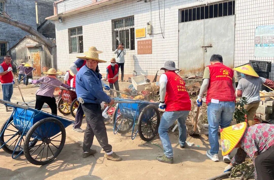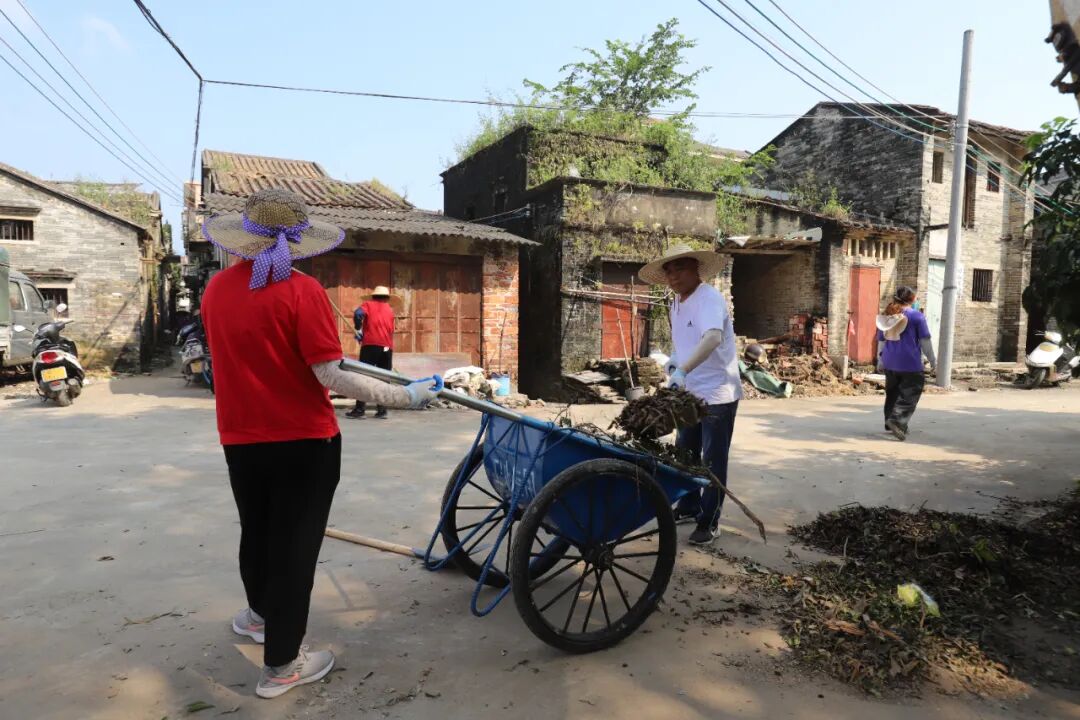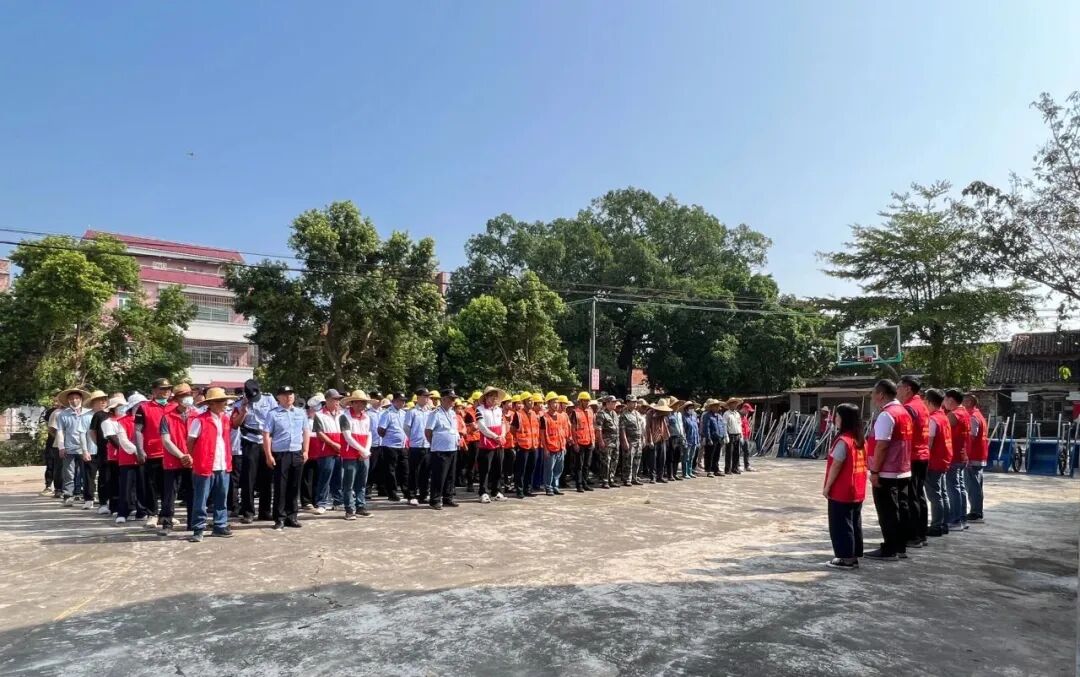 村級主會場的誓師儀式同樣熱血沸騰。10月18日早上,開平市委常委、市委辦公室主任、統(tǒng)戰(zhàn)部部長伍德斌,江門市供銷社副主任、供銷集團董事長鄺衛(wèi)民,水口鎮(zhèn)黨委書記司徒錦泉,鎮(zhèn)黨委副書記、鎮(zhèn)長胡萬程以及支援單位服務隊、鎮(zhèn)民兵隊伍、綜合行政執(zhí)法隊、義工志愿者、環(huán)衛(wèi)工人等200多人齊聚紅進沖奕村,掀起以“兩清一滅”為核心的全域全員愛國衛(wèi)生運動熱潮。