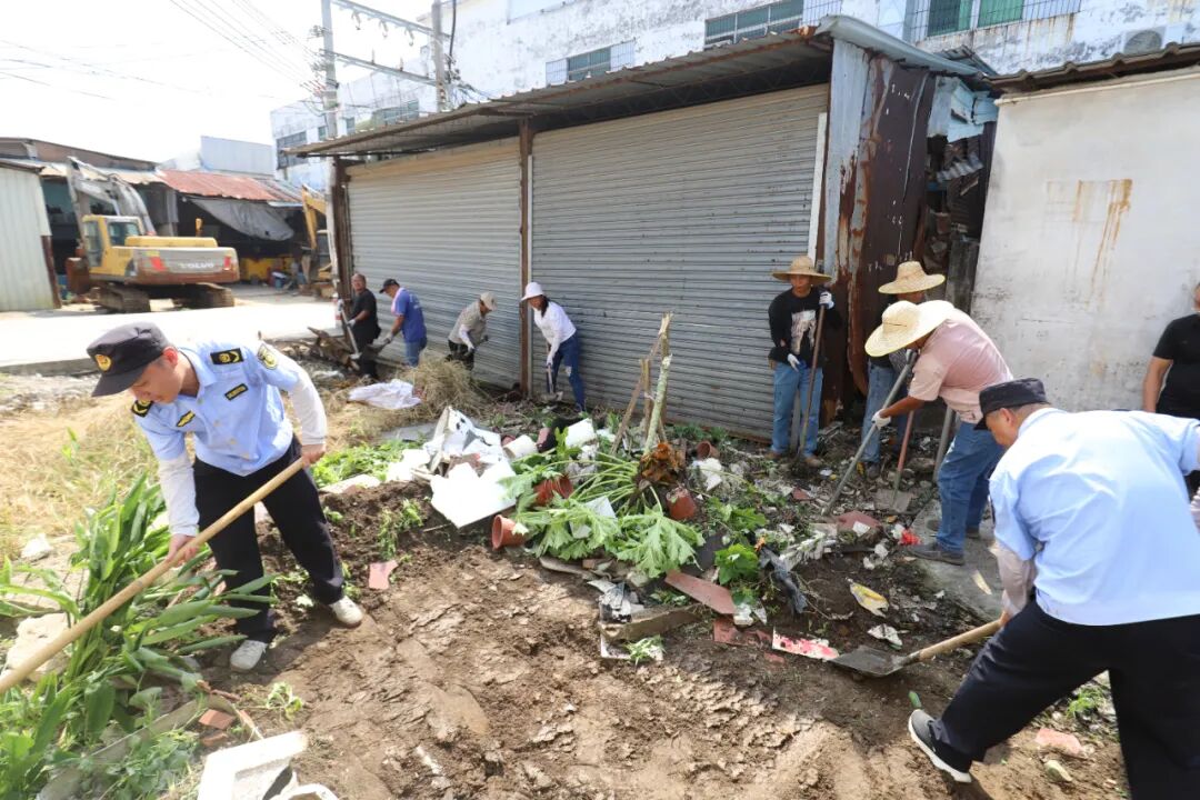 在向陽村,村干部用方言解讀愛國衛(wèi)生運動意義,組建“清掃隊”,扛起掃帚向村內衛(wèi)生死角“宣戰(zhàn)”;在人民社區(qū),志愿者與攤主攜手清理攤位周邊雜物,“齊心滅蚊一小步、城市文明一大步”的標語在市場內格外醒目;在岡中村,黨員志愿者兵分兩路,一隊清理田間灌溉溝渠的雜草淤泥、疏通積水,一隊逐戶協(xié)助村民整理庭院角落、清除蚊媒孳生地,既守護農(nóng)田生產(chǎn)環(huán)境,又改善村民居住條件,贏得群眾紛紛點贊。