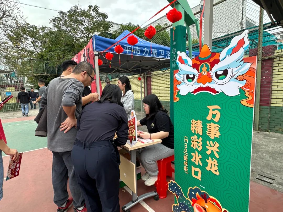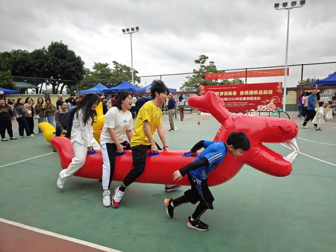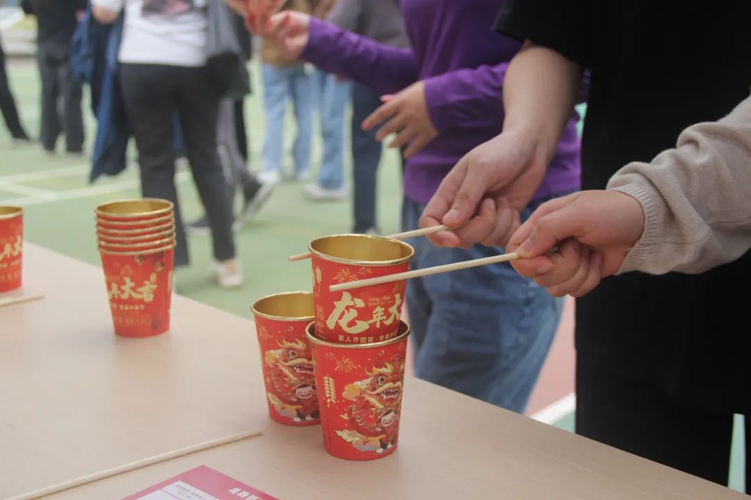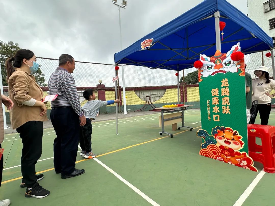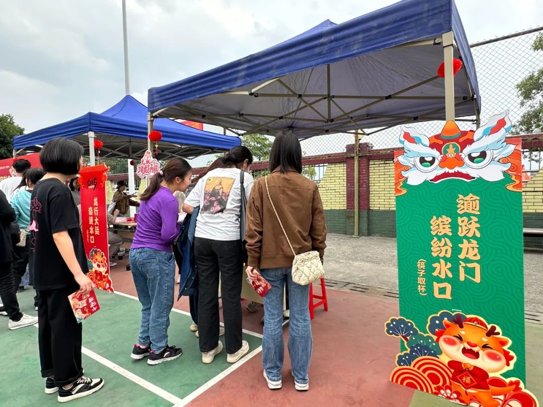 游園活動現(xiàn)場設(shè)置了豐富的游戲項目,分別是“欣欣向龍,幸福水口(粘球飛鏢)”“龍飛鳳舞,魅力水口(紙杯抽紙)”“雙龍戲珠,團(tuán)結(jié)水口(旱地龍舟)”“龍行大運(yùn),奮進(jìn)水口(滾滾樂)”“逾躍龍門,團(tuán)結(jié)水口(筷子取杯)”“龍騰虎躍,健康水口(乒乓球五子棋)”“萬事興龍,精彩水口(emoji猜成語)”“好運(yùn)龍龍,活力水口(套圈圈)”“‘龍’重登場。啟起新歲(祝福寄語)”。