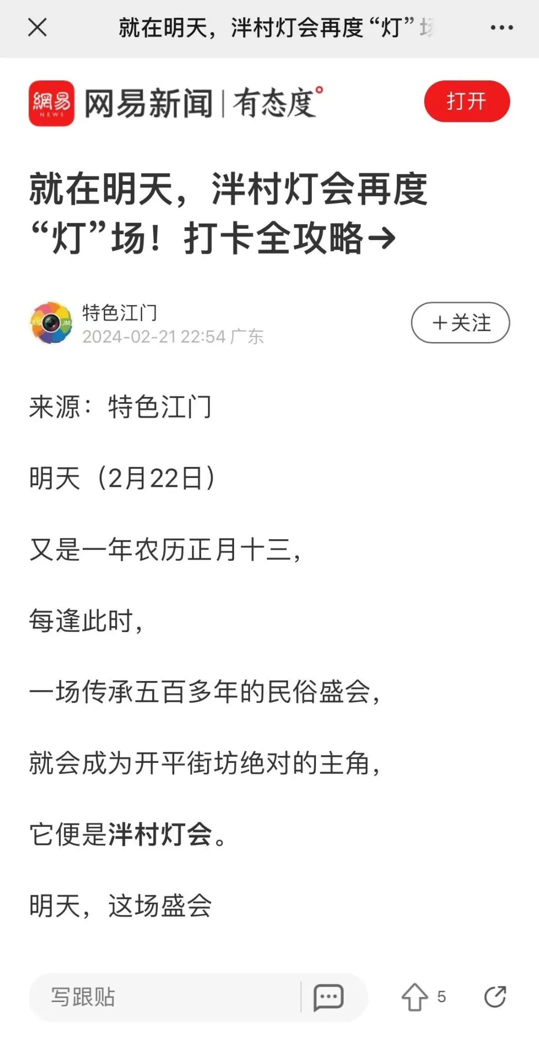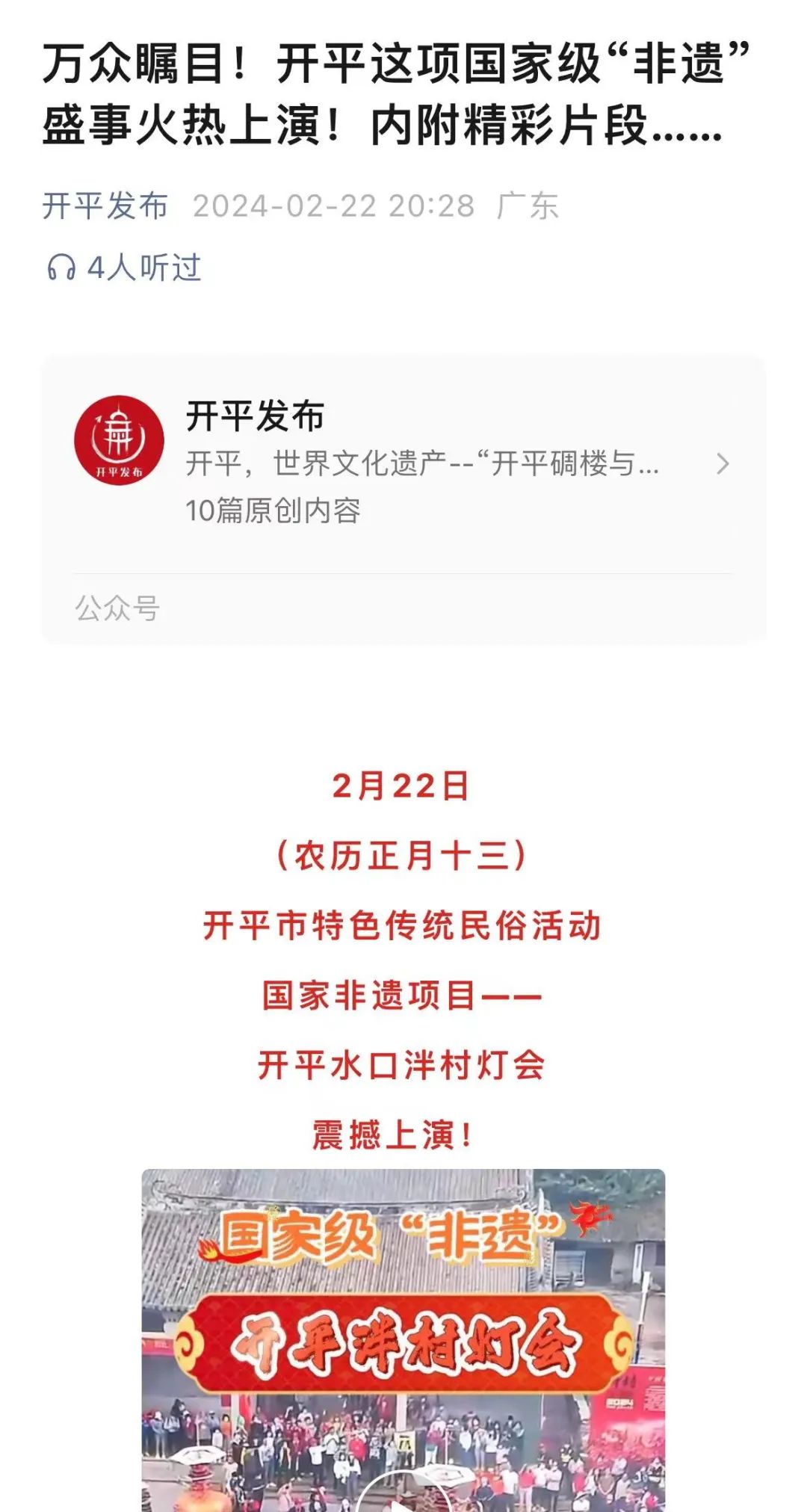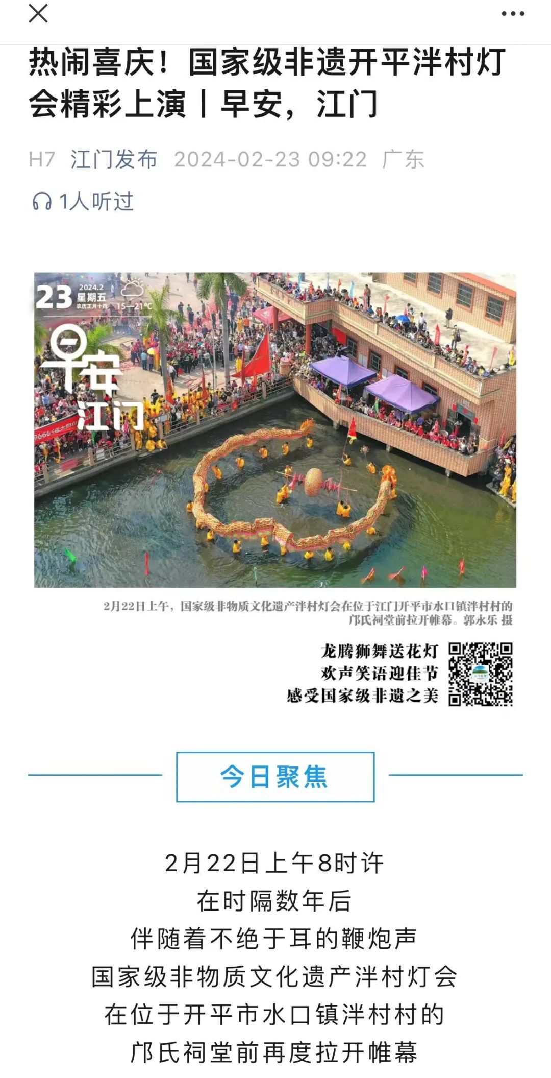 作為江門(mén)五邑地區(qū)規(guī)模最大、影響最廣、名氣最盛的傳統(tǒng)民俗活動(dòng)之一,開(kāi)平水口泮村燈會(huì)從籌備階段就吸引了社會(huì)媒體和海內(nèi)外鄉(xiāng)親的關(guān)注和支持,對(duì)此次泮村花燈盛會(huì)進(jìn)行了全方位、多角度的集中宣傳。