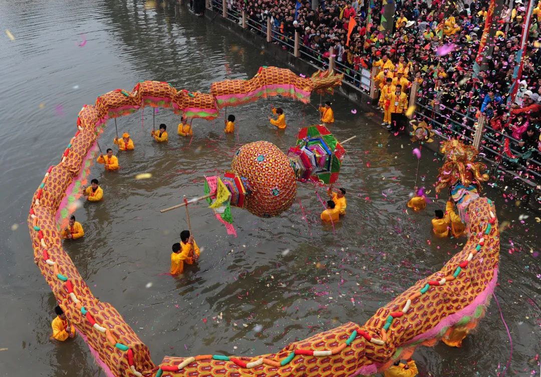 起燈后,花燈分別以不同方向、不同路線,遍游全鄉(xiāng)四十多條村。每到一村,村民都要以舞獅、燃放炮竹在村口迎送。而接燈方式最特別的要數(shù)金龍村,由于這條村俗稱“牛口村”,為避“送燈送龍入牛口”之忌,巨大的花燈要繞道而行,趟水而過。此外,由于村中的祖祠門口窄小,花燈竟要翻墻而入,整個過程熱鬧非常。人們在燈下、龍下鉆來鉆去,寄寓來年平安健康、聰明伶俐。