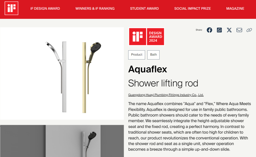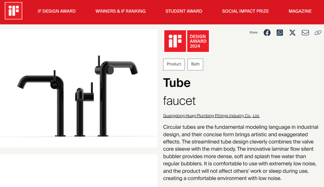 2024開局,華藝就打響開門紅“第一炮”!近日,2024德國IF設計大獎公布最終獲選名單,在這場權威的國際設計盛宴中,華藝衛(wèi)浴參選的“SWAN電子面盆龍頭”、“Tube面盆龍頭”、“Aquaflex花灑升降桿”憑借出色的設計在數(shù)以千萬件優(yōu)秀作品中脫穎而出,榮獲2024德國IF設計大獎。
