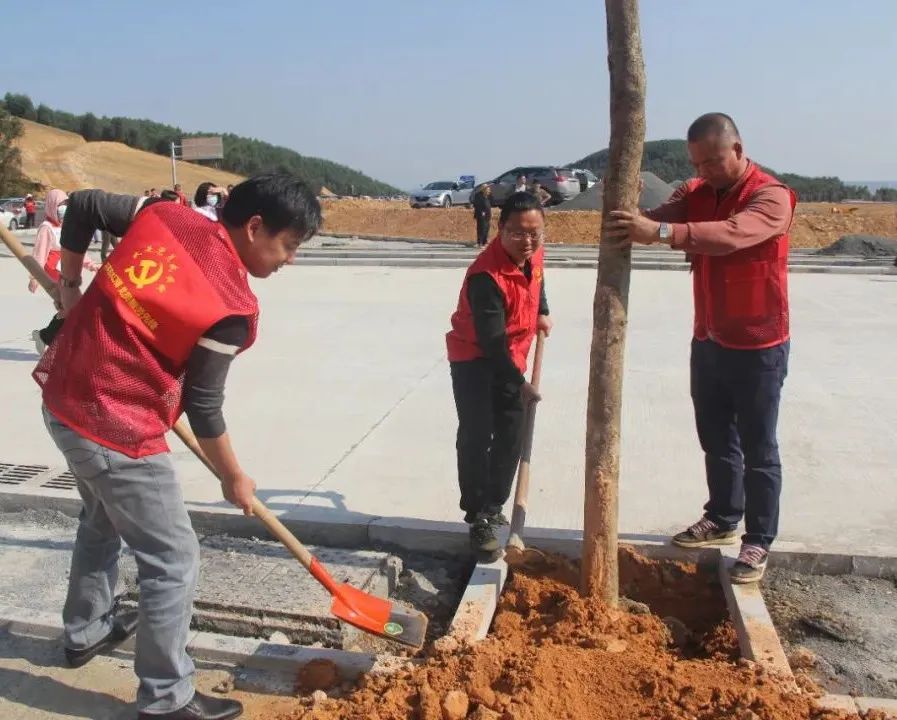 植樹現(xiàn)場,大家熱情高漲,干勁十足。黨員干部率先垂范,團員青年、企業(yè)家、網(wǎng)格員、志愿者積極參與。三人一組、五人一隊,有的揮鍬鏟土、提苗扶正,有的培土圍堰、提桶澆水,各個環(huán)節(jié)銜接有序,呈現(xiàn)一派熱火朝天的植樹景象。