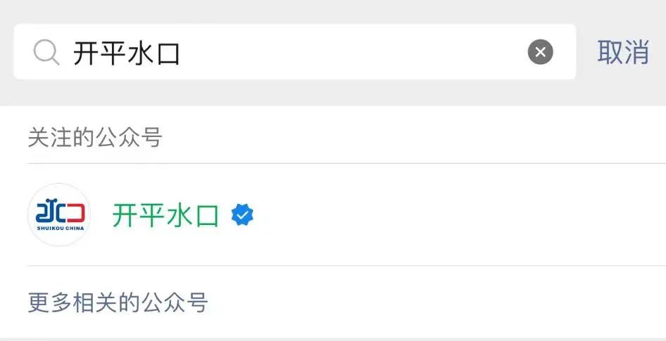 步驟一:微信搜索并關(guān)注【開平水口】公眾號。