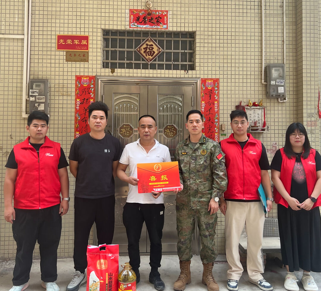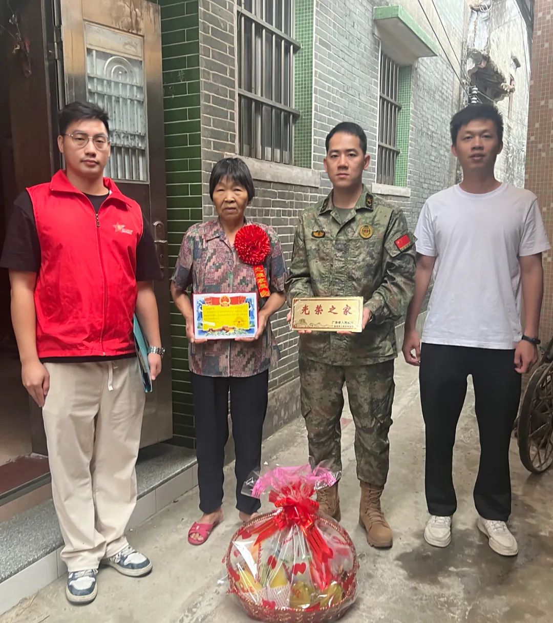 慰問組深入走訪鄺業(yè)成、譚文焯、郭沛杰、蘇鉅祥4名優(yōu)秀士兵家庭,將喜報和慰問品送至家屬手中,向軍屬們表示熱烈的祝賀,并對其家屬為國家、部隊(duì)培養(yǎng)輸送的人才以及為家鄉(xiāng)贏得的榮譽(yù)表示感謝。同時,慰問組與軍屬們展開親切交談,詳細(xì)了解軍屬的工作和生活情況,宣講優(yōu)撫政策,并希望家屬能繼續(xù)做好軍人的堅(jiān)強(qiáng)后盾,支持孩子安心服役,勉勵孩子扎根軍營、再立新功。