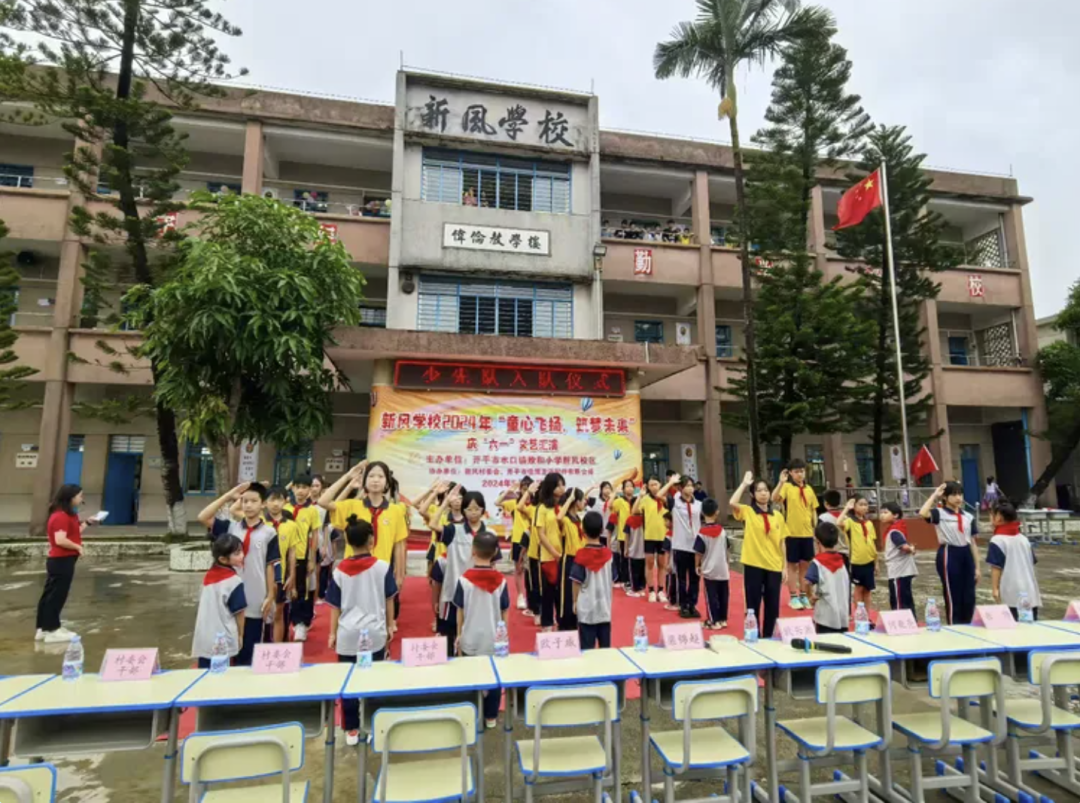 為營(yíng)造活潑向上的校園文化,充分發(fā)揮學(xué)生的特長(zhǎng),提高學(xué)生的全面素質(zhì),讓全校所有的小朋友們快樂(lè)而有意義地度過(guò)兒童節(jié),致和小學(xué)新風(fēng)分教點(diǎn)開展“童心飛揚(yáng),筑夢(mèng)未來(lái)”慶“六一”主題活動(dòng),除了有精彩的文藝匯演外,還特別舉辦了少先隊(duì)入隊(duì)儀式?!拔沂侵袊?guó)少年先鋒隊(duì)隊(duì)員。我在隊(duì)旗下宣誓……”聲聲鏗鏘有力,每一句誓言都充滿了堅(jiān)定與希望,彰顯了聽(tīng)黨話、跟黨走,奮發(fā)上進(jìn)的決心和斗志。