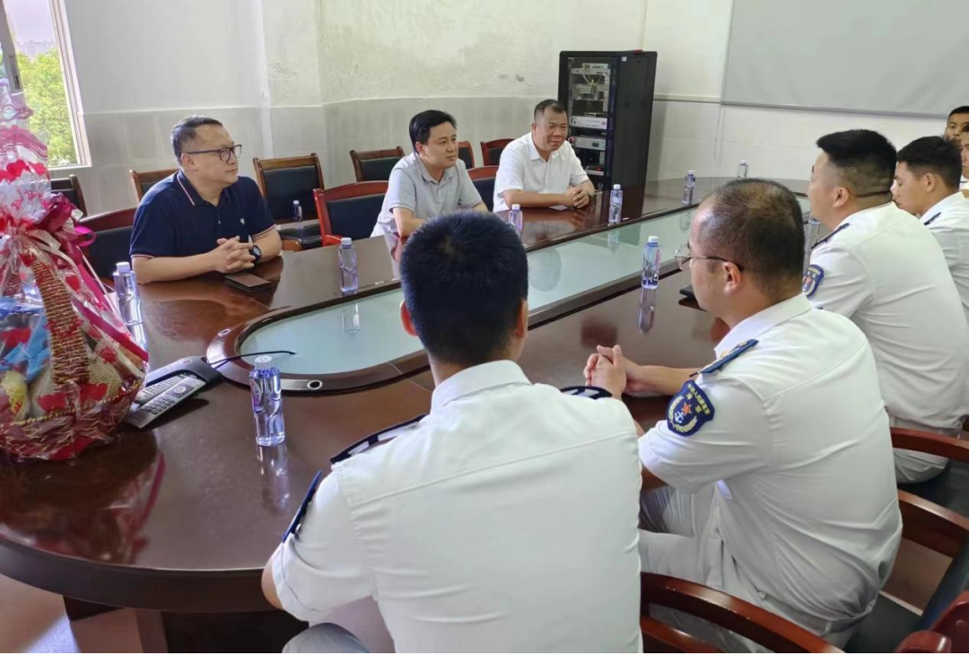 在開新海軍基地,司徒錦泉一行與部隊負(fù)責(zé)同志進(jìn)行親切座談交流,對駐地部隊官兵長期以來支持水口鎮(zhèn)經(jīng)濟(jì)社會發(fā)展、維護(hù)地方穩(wěn)定所作的貢獻(xiàn)表示感謝,并詳細(xì)了解了部隊建設(shè)、軍事訓(xùn)練和生活情況。司徒錦泉表示,當(dāng)前,水口鎮(zhèn)上下正深入學(xué)習(xí)貫徹黨的二十屆三中全會精神,全力推進(jìn)“百千萬工程”、八鎮(zhèn)聯(lián)動等工作加力提速、落地見效,希望軍地雙方持續(xù)加強(qiáng)協(xié)作溝通,繼續(xù)關(guān)心和支持水口經(jīng)濟(jì)社會發(fā)展,為水口高質(zhì)量發(fā)展和社會安全穩(wěn)定保駕護(hù)航、再立新功。駐地部隊對鎮(zhèn)黨委、政府的到訪和慰問表示感謝,表示持續(xù)增進(jìn)軍政軍民團(tuán)結(jié),合力做好新時代強(qiáng)國強(qiáng)軍事業(yè)。