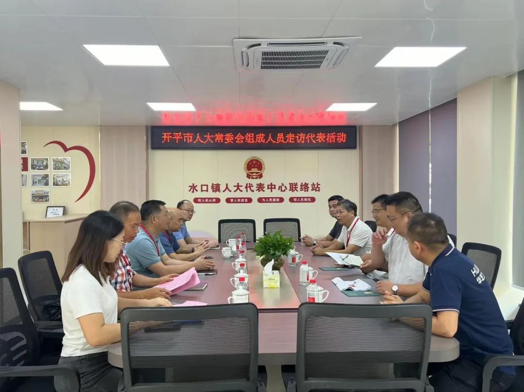 在水口鎮(zhèn)人大代表中心聯(lián)絡(luò)站,調(diào)研組一行實地查看站點“三化”和“數(shù)字人大”建設(shè)等工作情況,深入了解聯(lián)絡(luò)站接訪區(qū)、閱讀區(qū)、辦公區(qū)、會議區(qū)、代表風(fēng)采展示墻、戶外宣傳欄等功能分區(qū)規(guī)劃布局,并與江門市、開平市人大代表進(jìn)行面對面溝通交流,詳細(xì)了解代表履職以及工作、生活情況,認(rèn)真聽取了代表們對于群眾普遍關(guān)心的熱點、難點問題的意見建議,同時就代表們提出的舊城區(qū)改造、企業(yè)員工子女入學(xué)等問題進(jìn)行深入探討交流。
