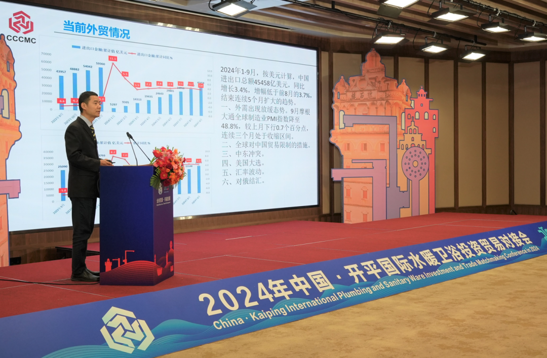 10月28日上午,2024年中國(guó)·開(kāi)平國(guó)際水暖衛(wèi)浴投資貿(mào)易對(duì)接會(huì)暨廣東省開(kāi)平水口水暖衛(wèi)浴國(guó)家外貿(mào)轉(zhuǎn)型升級(jí)基地成果展在赤坎華僑古鎮(zhèn)開(kāi)幕,來(lái)自泰國(guó)、哥斯達(dá)黎加、巴基斯坦、伊朗、也門(mén)、蒙古、贊比亞等國(guó)家的客商歡聚一堂,共謀發(fā)展大計(jì)、共創(chuàng)合作共贏,為開(kāi)平高水平對(duì)外開(kāi)放和水暖衛(wèi)浴行業(yè)高質(zhì)量發(fā)展注入強(qiáng)勁動(dòng)力。中國(guó)五礦化工進(jìn)出口商會(huì)會(huì)長(zhǎng)江輝,中國(guó)在非企業(yè)社會(huì)責(zé)任聯(lián)盟執(zhí)行委員會(huì)主席助理郭洪軍,商務(wù)部研究院研究員、博士生導(dǎo)師白明,開(kāi)平市委副書(shū)記、政法委書(shū)記關(guān)耀東,副市長(zhǎng)許永鋒,水口鎮(zhèn)黨委書(shū)記司徒錦泉,鎮(zhèn)黨委副書(shū)記、鎮(zhèn)長(zhǎng)胡萬(wàn)程等參加活動(dòng)。