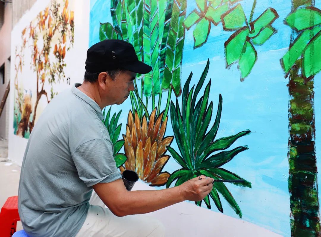 “在開(kāi)始今天墻繪前,我們已經(jīng)提前進(jìn)行了兩次現(xiàn)場(chǎng)勘察,結(jié)合當(dāng)?shù)厝宋膬?nèi)涵、民俗風(fēng)情和自然景觀,精心構(gòu)思了系列草圖,希望通過(guò)創(chuàng)作反映時(shí)代新貌和群眾新生活的作品,助力‘百千萬(wàn)工程’和美麗鄉(xiāng)村建設(shè)?!闭勂鸨敬位顒?dòng)的意義和初衷,江門(mén)市政協(xié)專(zhuān)職常委、書(shū)畫(huà)院秘書(shū)長(zhǎng)招文娟如是說(shuō)。