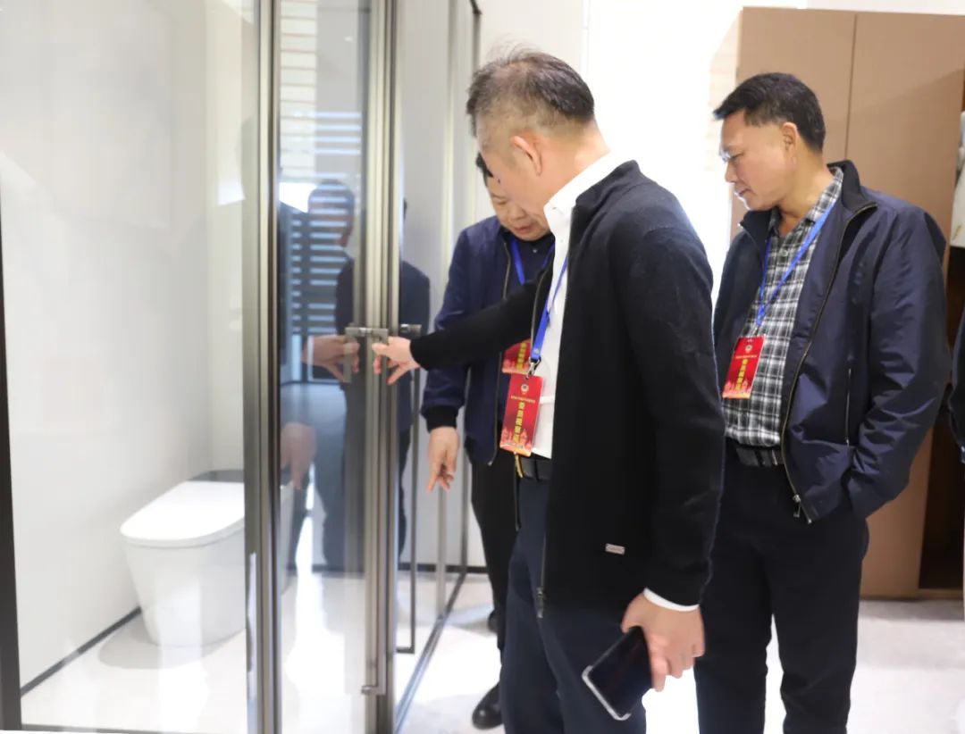 當(dāng)天上午,視察組到位于水口鎮(zhèn)的開平市國際衛(wèi)浴創(chuàng)新基地、廣東利多邦(緹派)衛(wèi)浴有限公司視察。