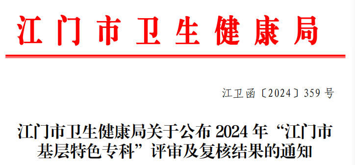 近日,根據(jù)《江門市衛(wèi)生健康局關(guān)于印發(fā)〈江門市基層特色??平ㄔO(shè)與評審工作方案〉的通知》(江衛(wèi)函〔2024〕212 號)精神,我市基層醫(yī)療衛(wèi)生機構(gòu)的學(xué)科體系建設(shè)取得了重要成果。一是在2024年度江門市基層特色??圃u審中,我市開平市水口醫(yī)院泌尿外科和開平市三埠街道社區(qū)衛(wèi)生服務(wù)中心老年醫(yī)學(xué)科脫穎而出,成功入選“江門市基層特色??啤?。二是2020年已獲評??频膹?fù)核結(jié)果繼續(xù)保留開平市蒼城鎮(zhèn)中心衛(wèi)生院頸肩腰腿痛專科 “江門市基層特色??啤狈Q號。這就標(biāo)志著我市基層醫(yī)療衛(wèi)生服務(wù)能力和學(xué)科發(fā)展水平逐年提升。