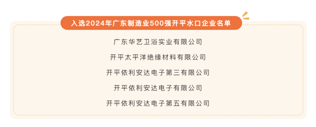 廣東省制造業(yè)協(xié)會、暨南大學(xué)產(chǎn)業(yè)經(jīng)濟(jì)研究院、廣東省發(fā)展和改革研究院聯(lián)合發(fā)布《2024年廣東制造業(yè)500強(qiáng)企業(yè)研究報(bào)告》(下稱《報(bào)告》)。據(jù)悉,開平市水口鎮(zhèn)5家企業(yè)入選廣東制造業(yè)500強(qiáng),為高質(zhì)量發(fā)展提供有力支撐。