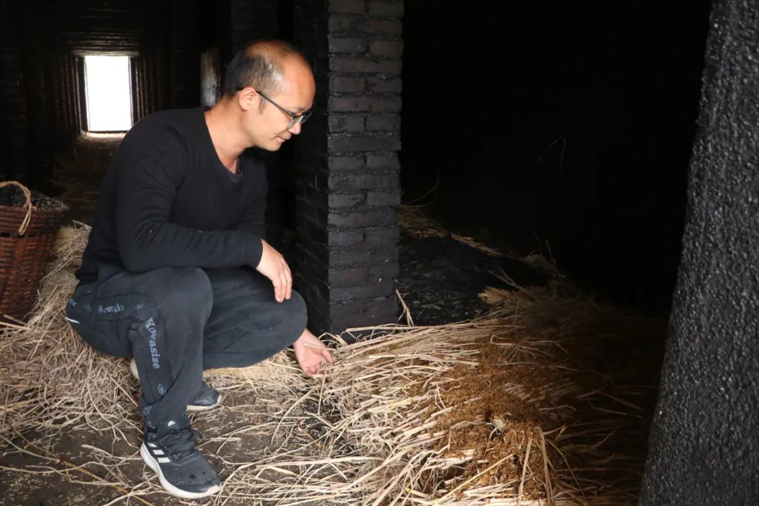 “熏烘火蒜大概需要15天時間。熏房分上下兩層,下層用來點燃禾稈草。我們把干的禾稈草鋪開之后,會在上方再鋪一層濕的谷殼,防止禾稈草燃燒的時候產(chǎn)生明火。燃燒禾稈草的煙熏到二層的蒜,每次大概熏兩個小時,一天熏兩次,熏15天?!?/span>