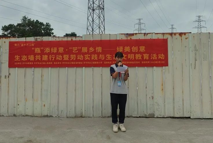 為深入推進“百縣千鎮(zhèn)萬村高質(zhì)量發(fā)展工程”,營造整潔、有序、文明的農(nóng)村人居環(huán)境,5月19日,水口鎮(zhèn)聯(lián)合后溪村委會、致和小學開展了綠美創(chuàng)意生態(tài)墻共建行動暨勞動實踐與生態(tài)文明教育活動,引導師生充分利用身邊閑置廢棄物品轉(zhuǎn)變?yōu)榫朗止に嚻?,掀起一場?chuàng)意手作與環(huán)保守護交織的綠色風暴。水口鎮(zhèn)副鎮(zhèn)長歐陽偉業(yè)、水口鎮(zhèn)人大副主席馮惠清參加活動。