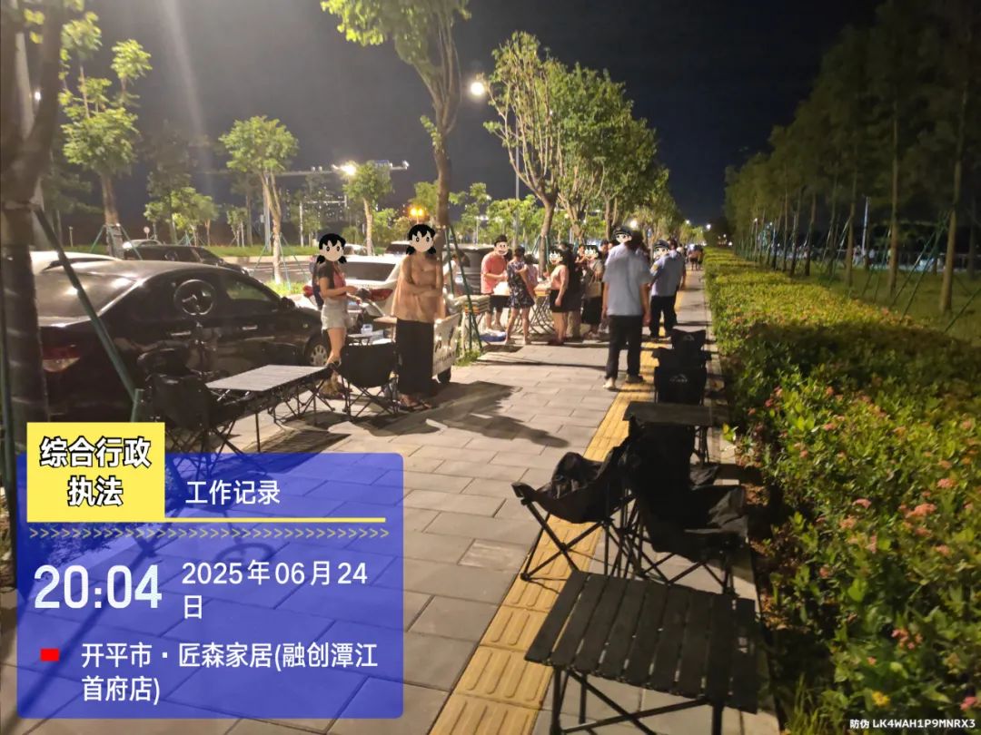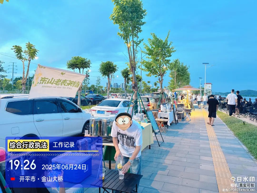 隨著金山大橋橋底下的潭江生態(tài)長廊一帶成為網(wǎng)紅打卡點(diǎn),人流急劇增加,不少流動(dòng)攤販以此為商機(jī),在此處聚集性占道經(jīng)營,形成“網(wǎng)紅”夜市。大量燒烤、飲料等攤檔隨意擺賣,嚴(yán)重影響了市容市貌和群眾出行,還存在噪音擾民、食品安全等諸多隱患。經(jīng)營結(jié)束后垃圾遍地、油污橫流,更是讓金山大橋的美景大打折扣。