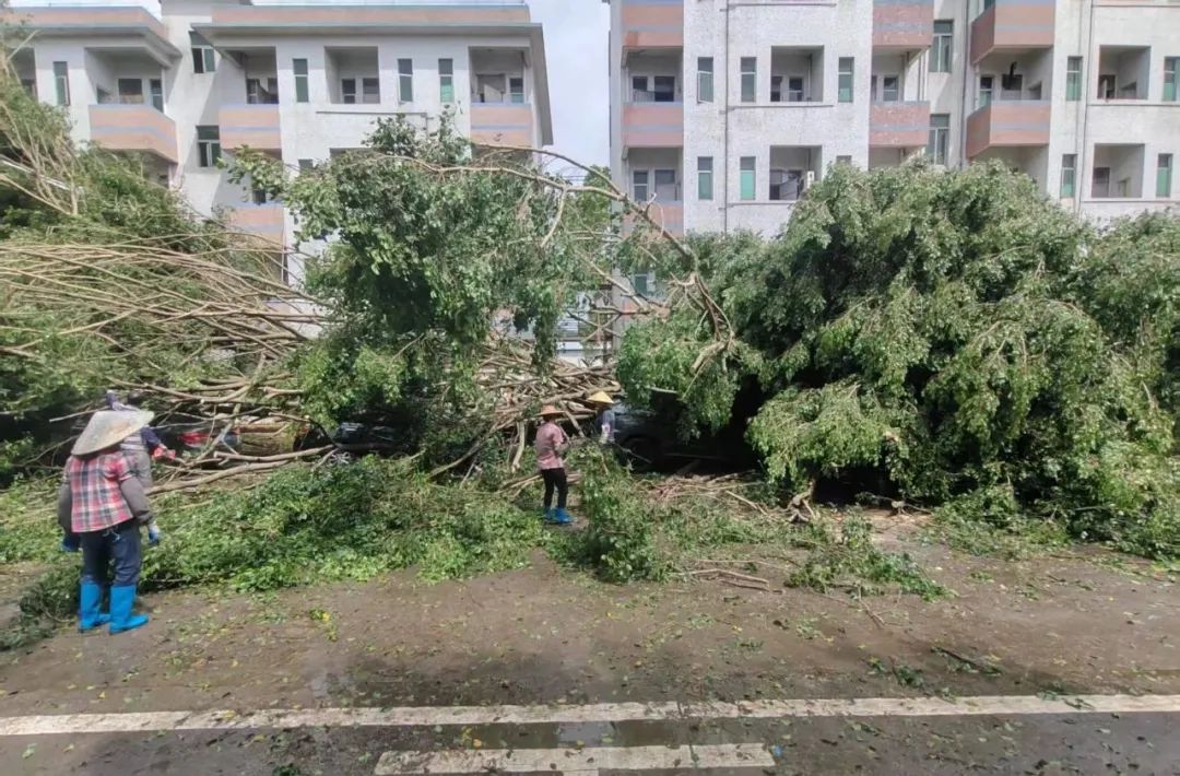 臺(tái)風(fēng)過境后,街道一片狼藉,倒伏的樹木和折斷的樹枝散落各處,厚厚的落葉覆蓋地面,低洼處積存渾濁雨水,給過往車輛和行人出行帶來極大不便。