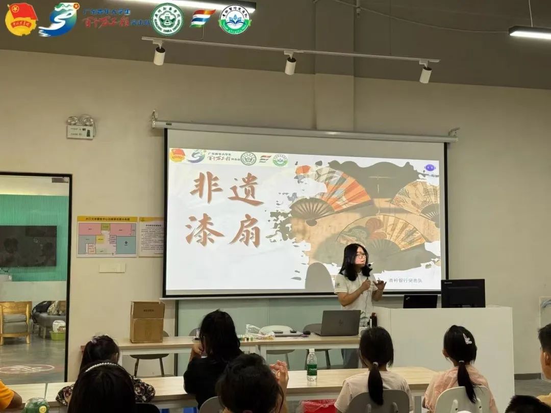 隨后,突擊隊(duì)員們?yōu)楹⒆觽冎v述了漆扇的悠久歷史、精湛工藝和文化底蘊(yùn),并詳細(xì)講解了漆扇的制作流程和浸染彩繪方法,讓知識(shí)在輕松愉悅的氛圍中傳遞。