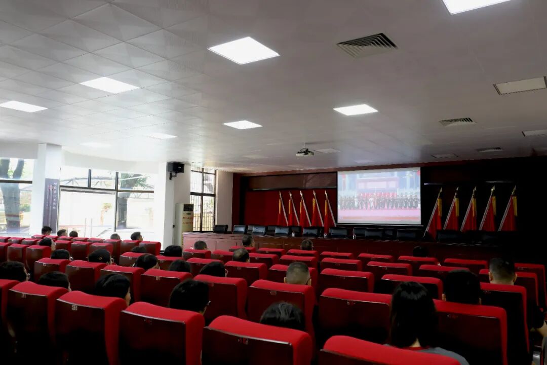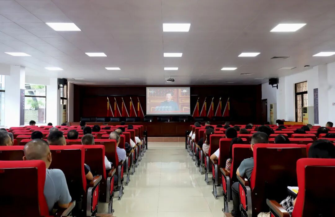 在鎮(zhèn)政府一樓禮堂,現場氛圍莊嚴肅穆,全體人員神情專注。司徒錦泉、胡萬程等鎮(zhèn)領導以及鎮(zhèn)機關全體在編干部凝神屏息、專心致志,認真聆聽習近平總書記重要講話,緊緊聚焦閱兵儀式各個環(huán)節(jié)。