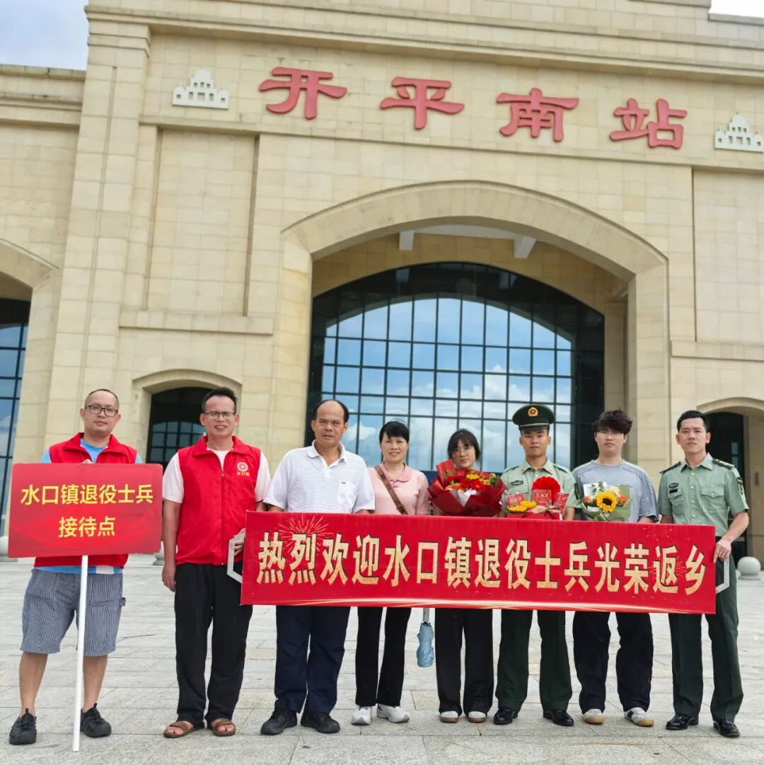 儀式現(xiàn)場,“熱烈歡迎水口鎮(zhèn)退役士兵光榮返鄉(xiāng)”的橫幅格外醒目,水口鎮(zhèn)退役軍人服務(wù)站工作人員和軍屬們早早齊聚開平南站,翹首以盼,靜候“最可愛的人”榮耀抵達(dá)。