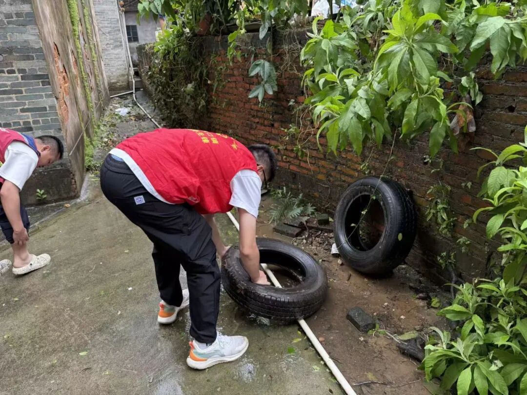 在岡中村,張婆婆一家在村干部的引導下,自覺清理房前屋后的積水點和雜物,形成“全民參與、群防群控”的良好氛圍。